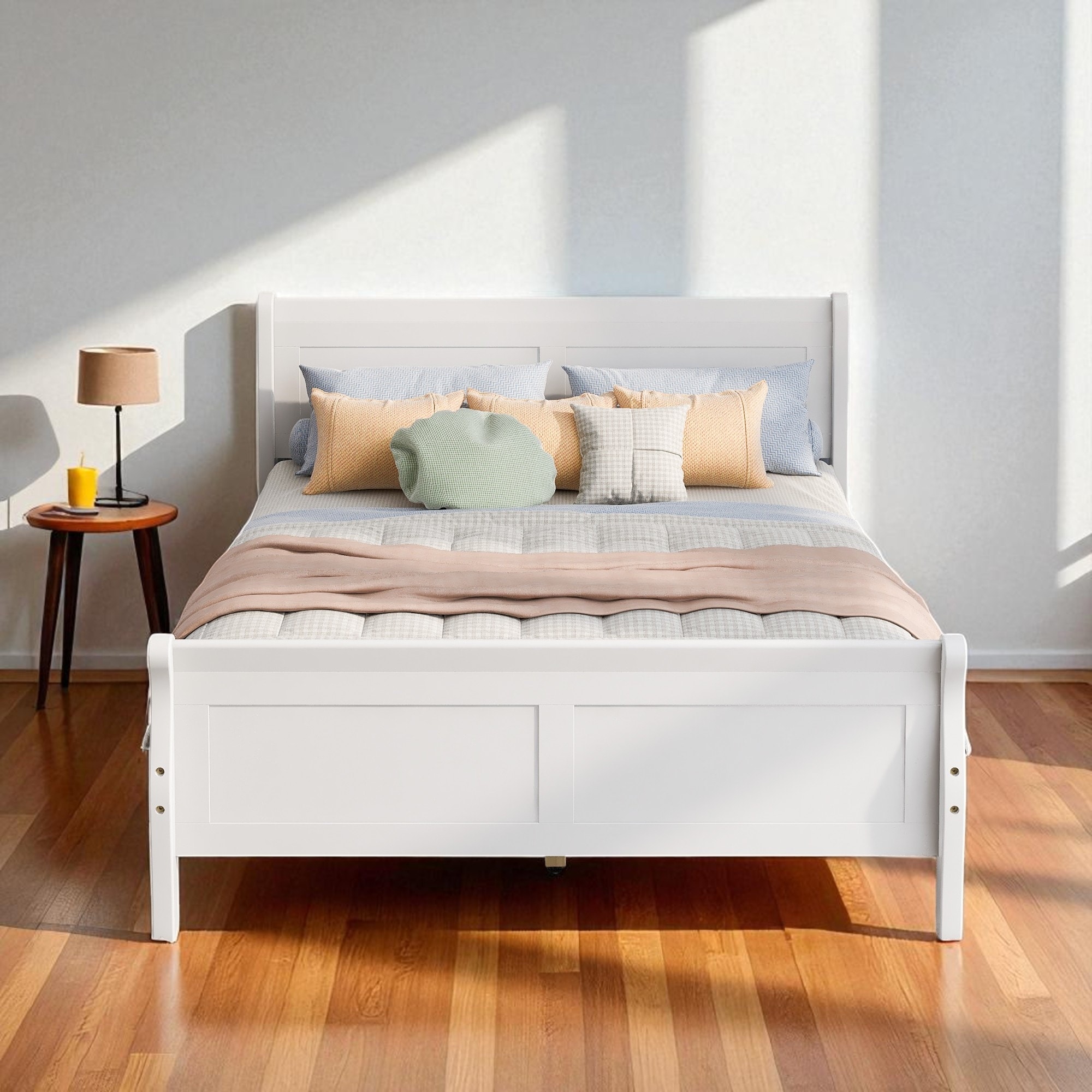 Queen Size Wood Platform Bed Frame with Headboard and Slatted Support, No Box Spring Required