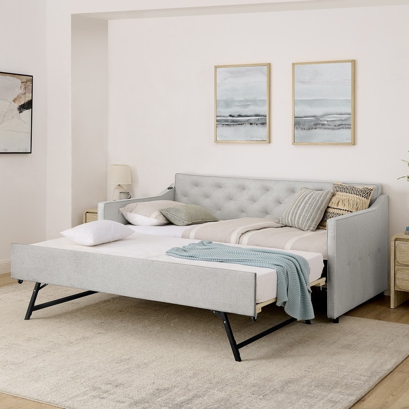 Twin Size Upholstery Daybed with Twin Size Trundle and USB Charging