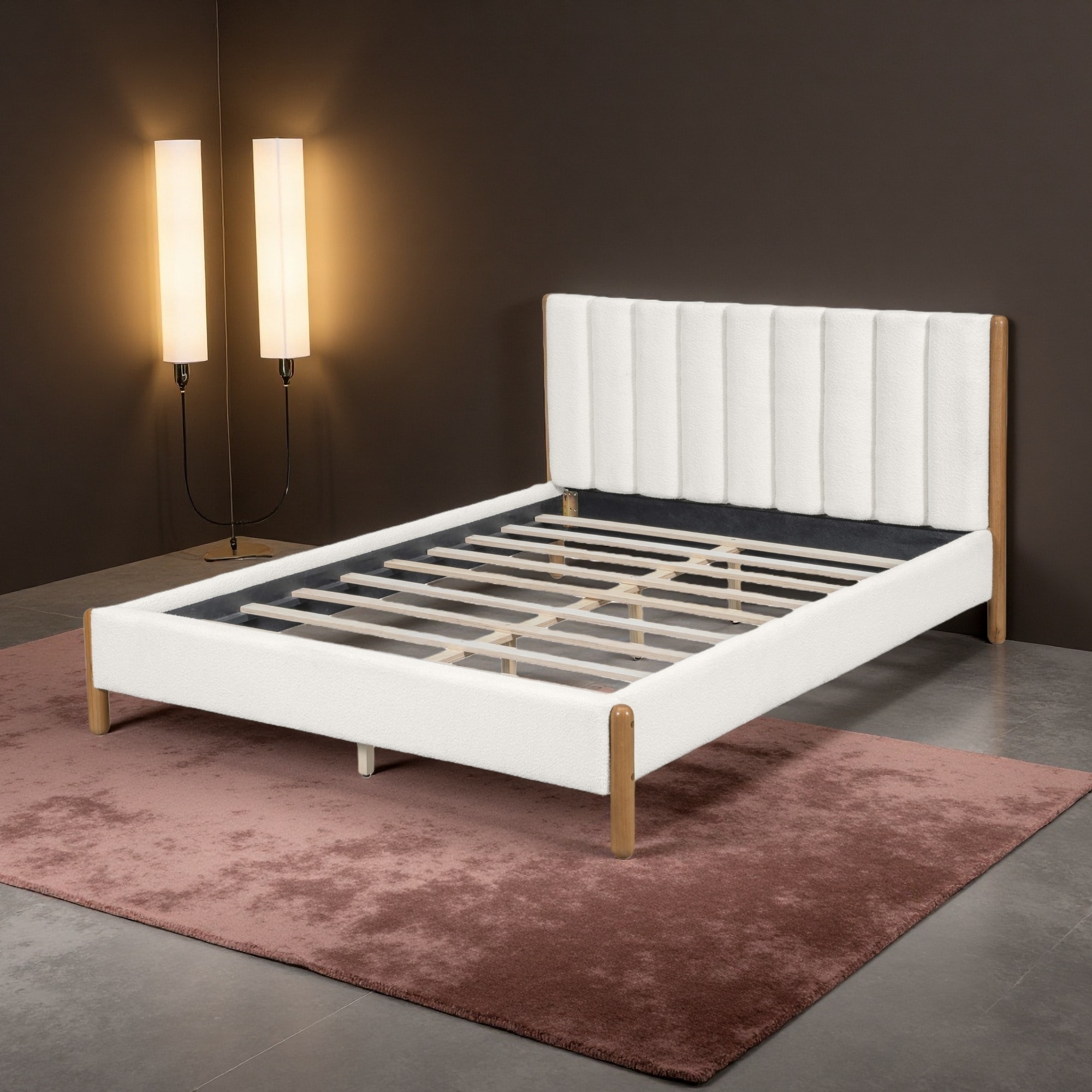 Full Size Fabric Wingback Platform Bed, Mid-Century Modern