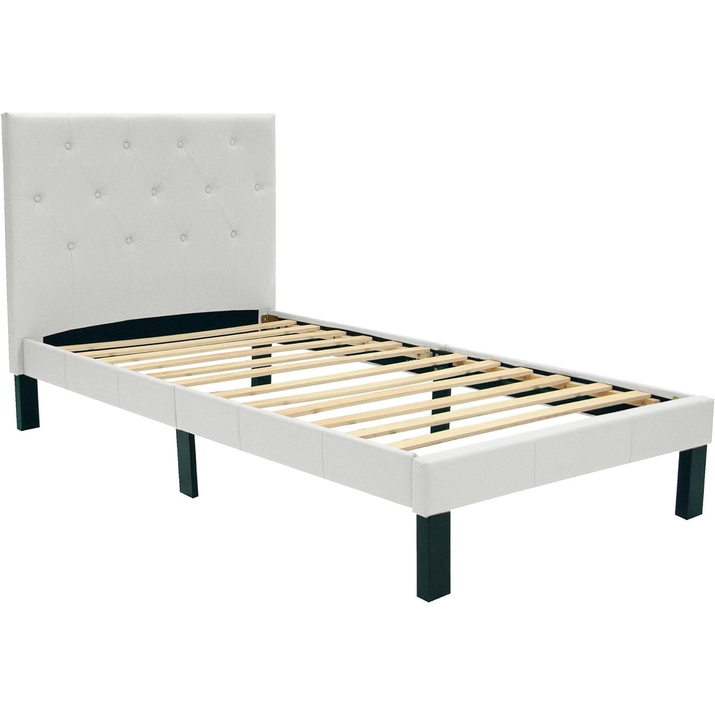 Twin PU Upholstered Platform Bed with Tufted Headboard, White