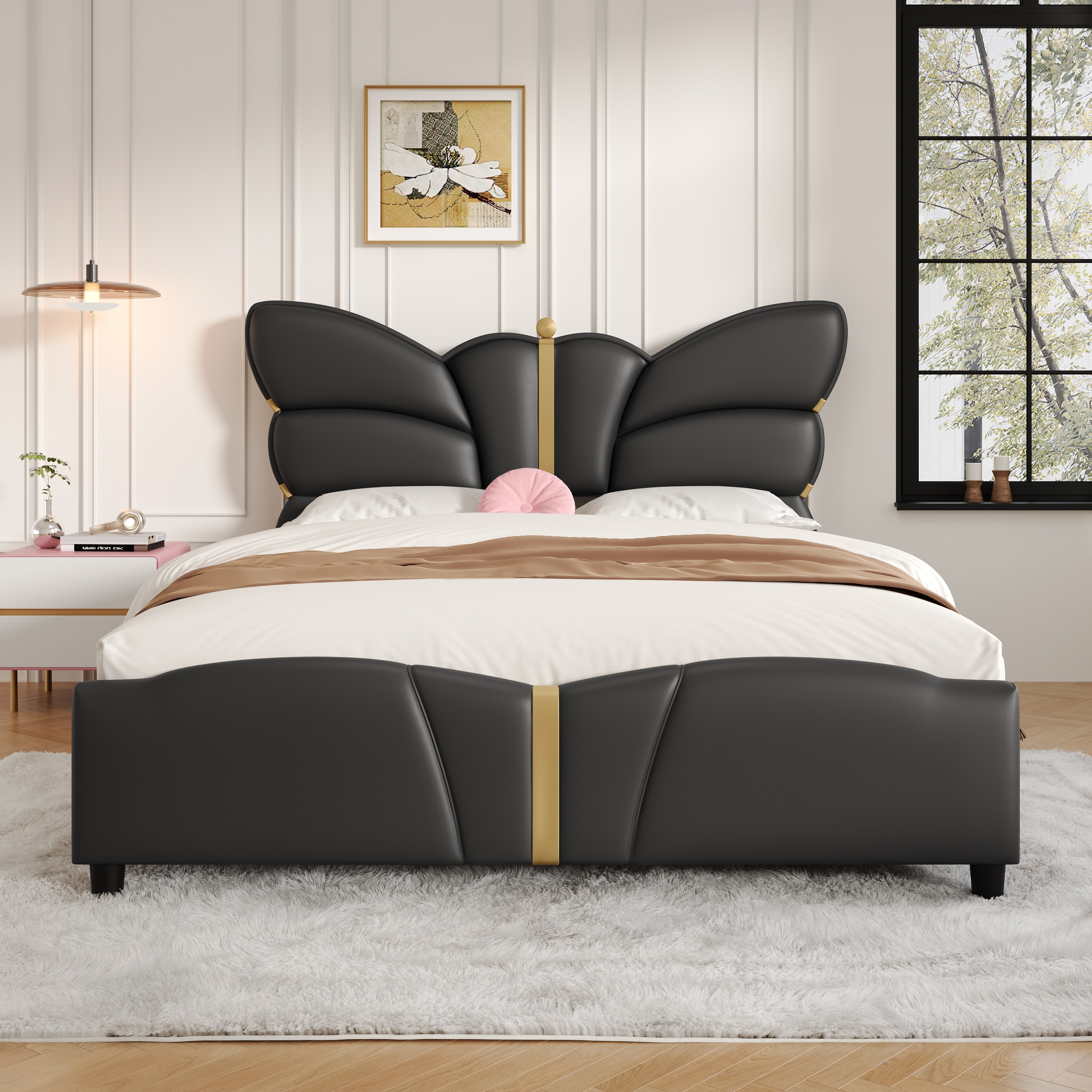 Upholstered PU Leather Bed Frame,with Butterfly Shaped Headboard and Footboard