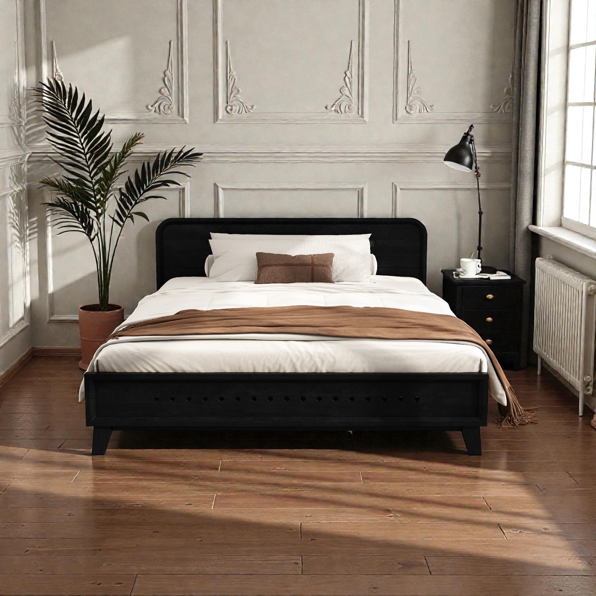 Modern Solid Wood Platform Bed, Pine Wood Queen/King Bed Frame with Slats, Stable No Box Spring