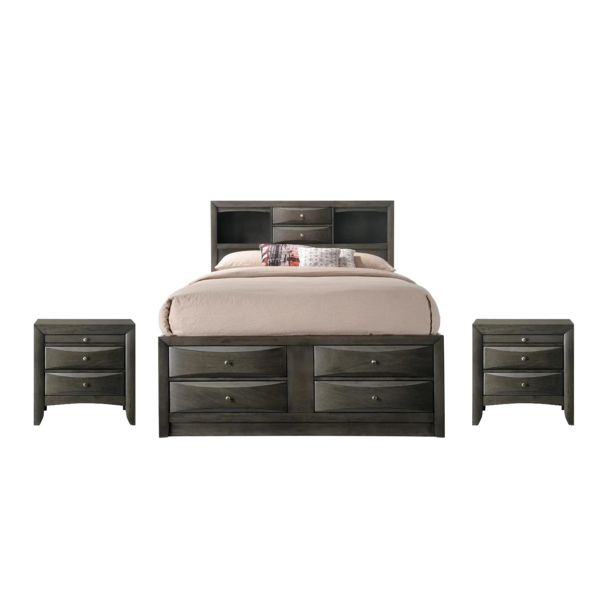 GrayStorage Platform Captain's Bed with Bookcase Headboard Drawers Solid Wood Furniture