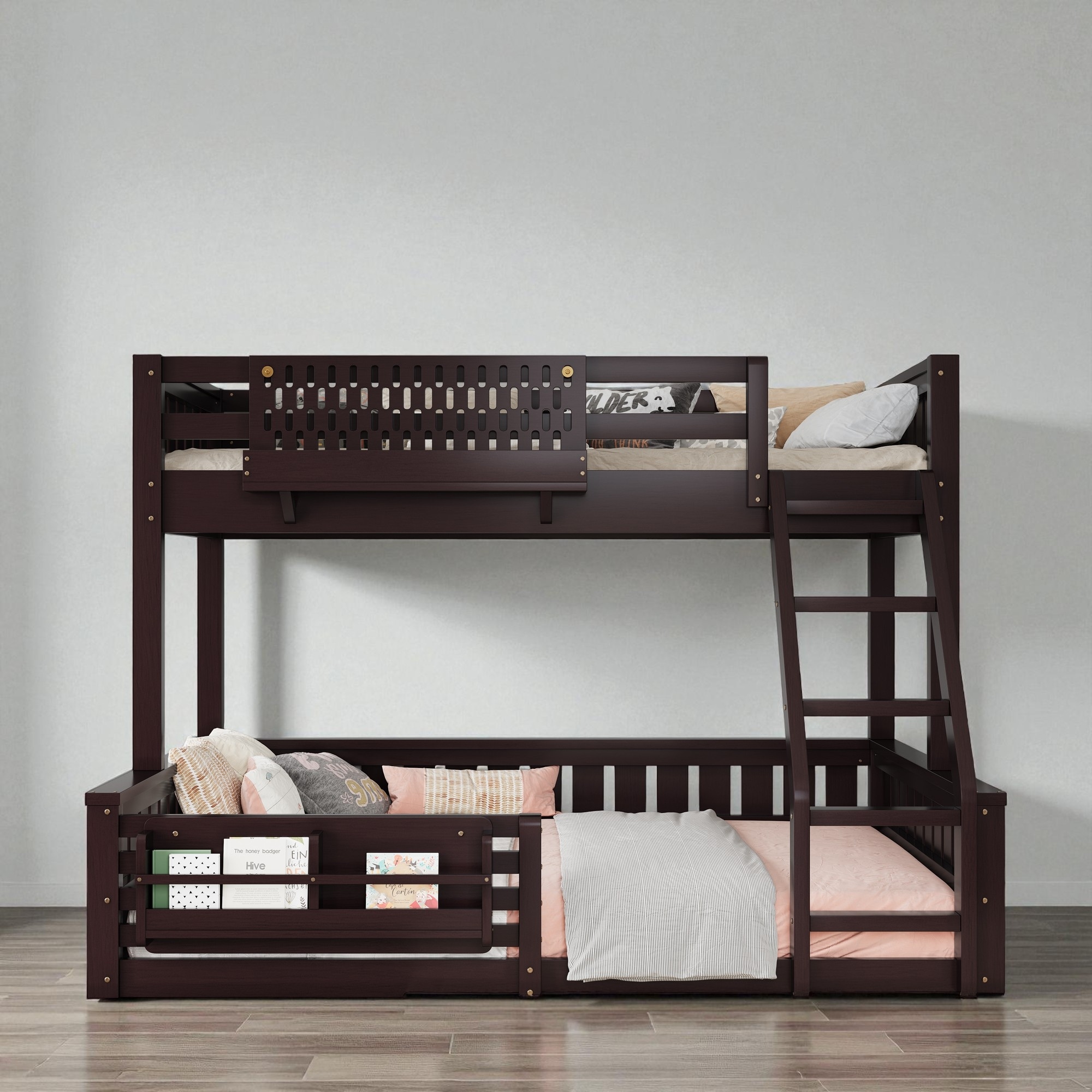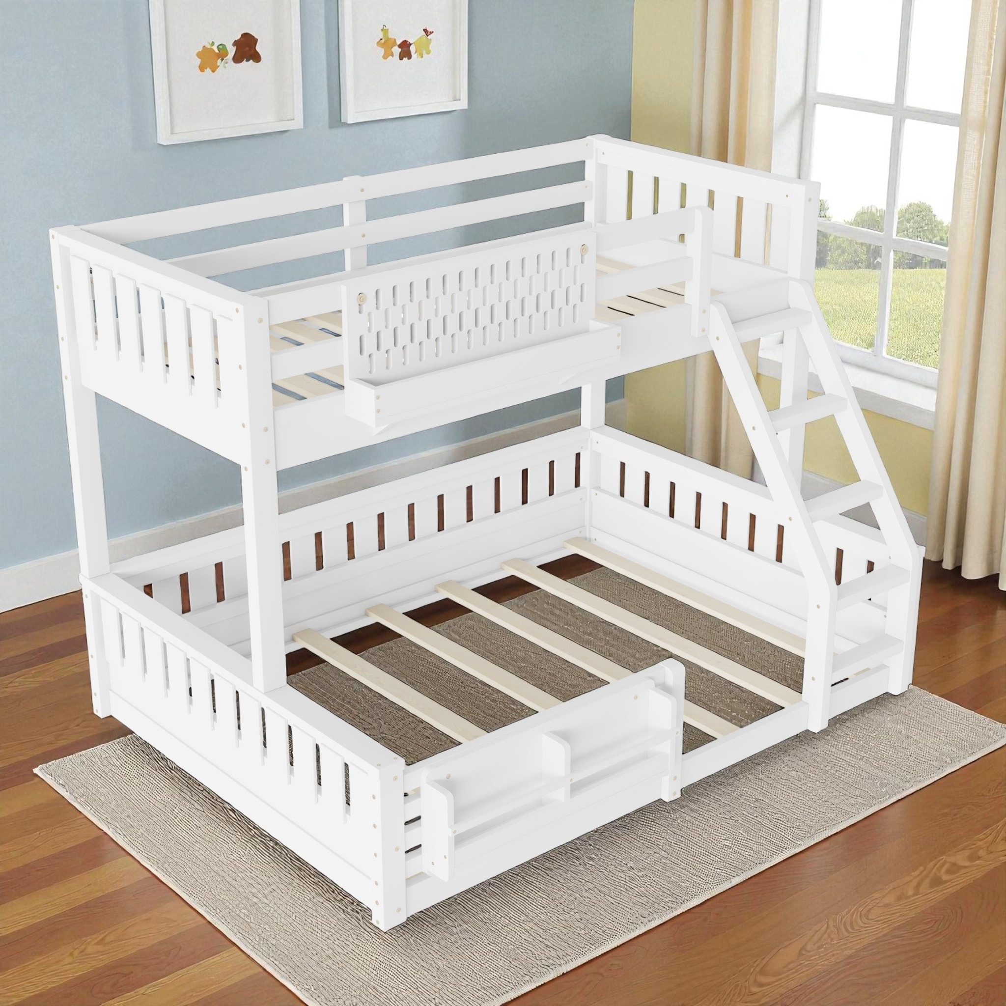 Twin XL Over Queen Bunk Bed with Ladder, Pegboard, Bookshelf and Guardrails, Convertible Design