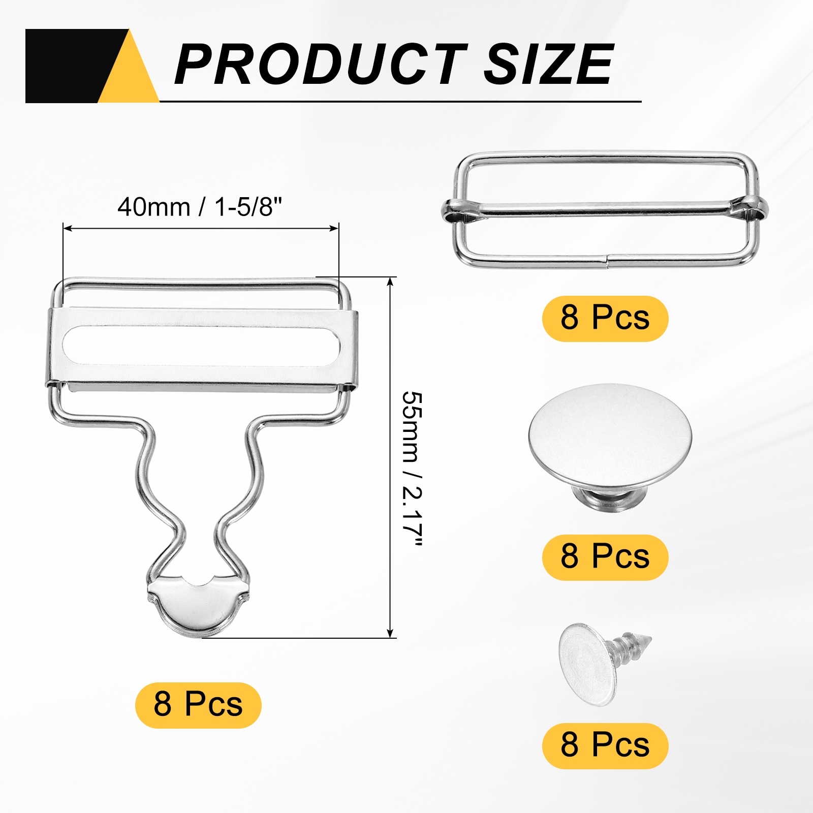 Metal Overalls Buckles, Overall Suspender Clips, Adjustable Buckle Replacement with Sliders and Buttons