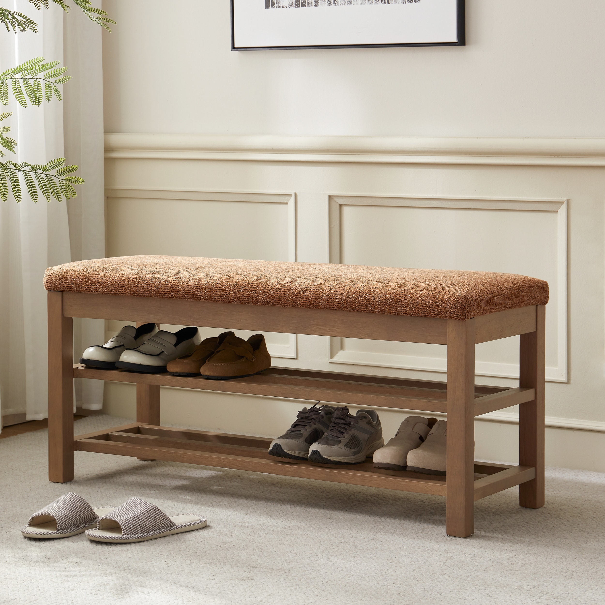 HUIMO Multi-Functional Solid Wood Bench with Storage Shelves 46in/39in/31in