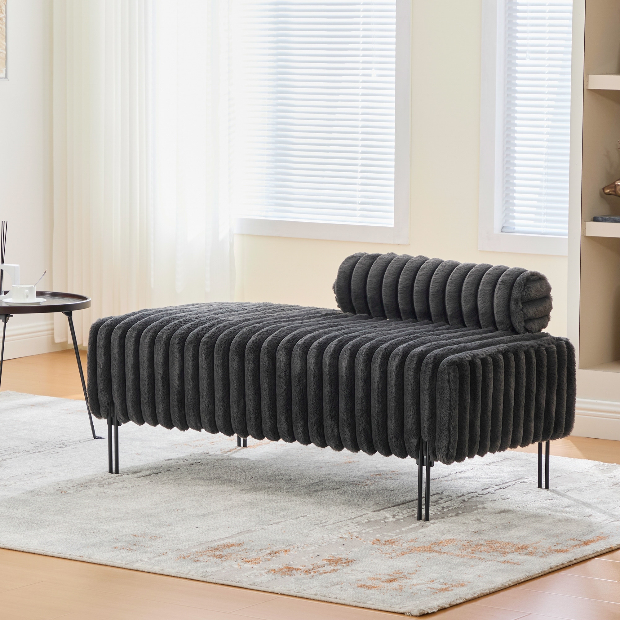 Roomfitters Faux Fur Loveseat Bench, 2-Seater Small Sofa Window Ottoman Footrest with Adjustable Back and Metal Legs