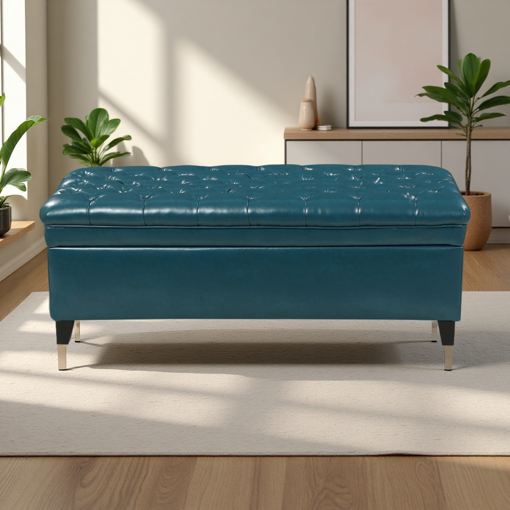 50"L Faux Leather Storage Ottoman with Tufted Top - Rectangular Bench Design, Wooden Frame, and Hidden Storage Space