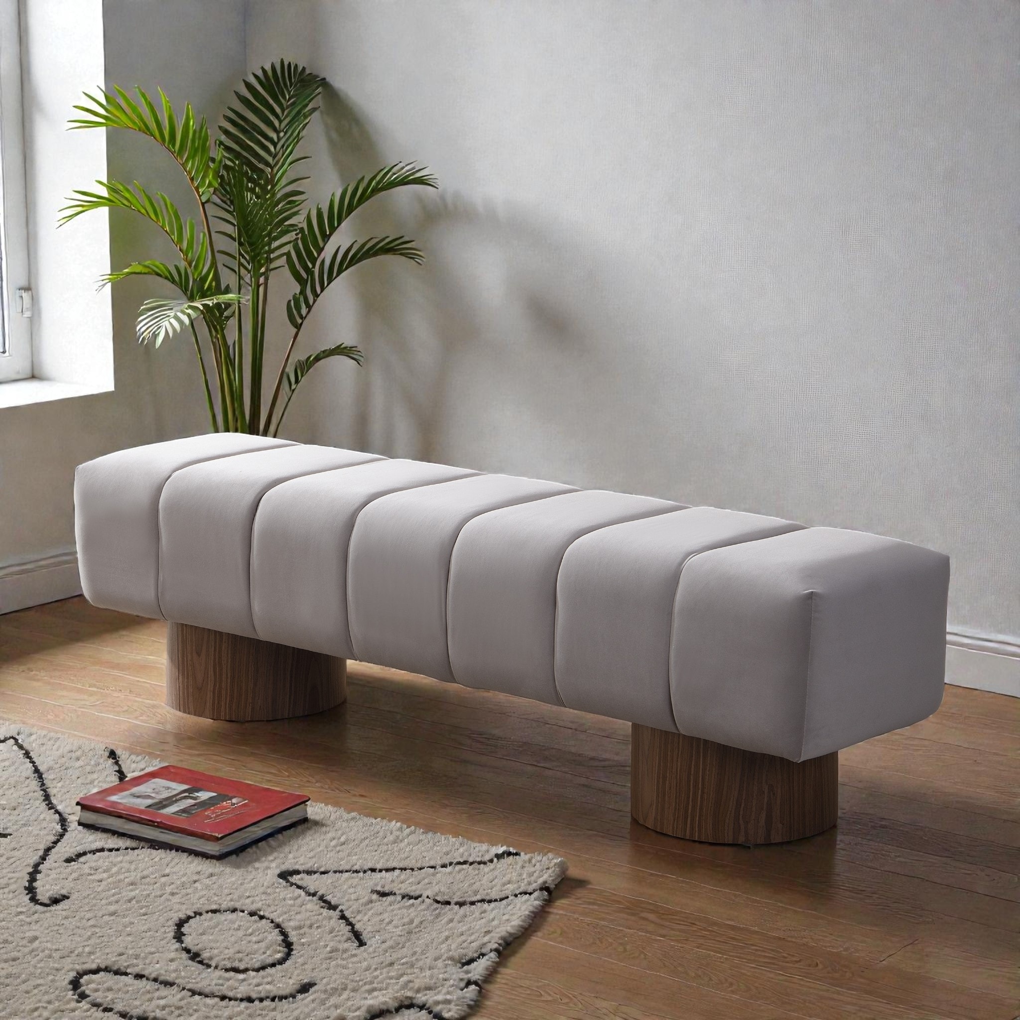 Upholstered Entryway Bench with Wood Legs, Long Bedroom Ottoman for End of Bed or Dining Room, 64" Fabric Seating Bench