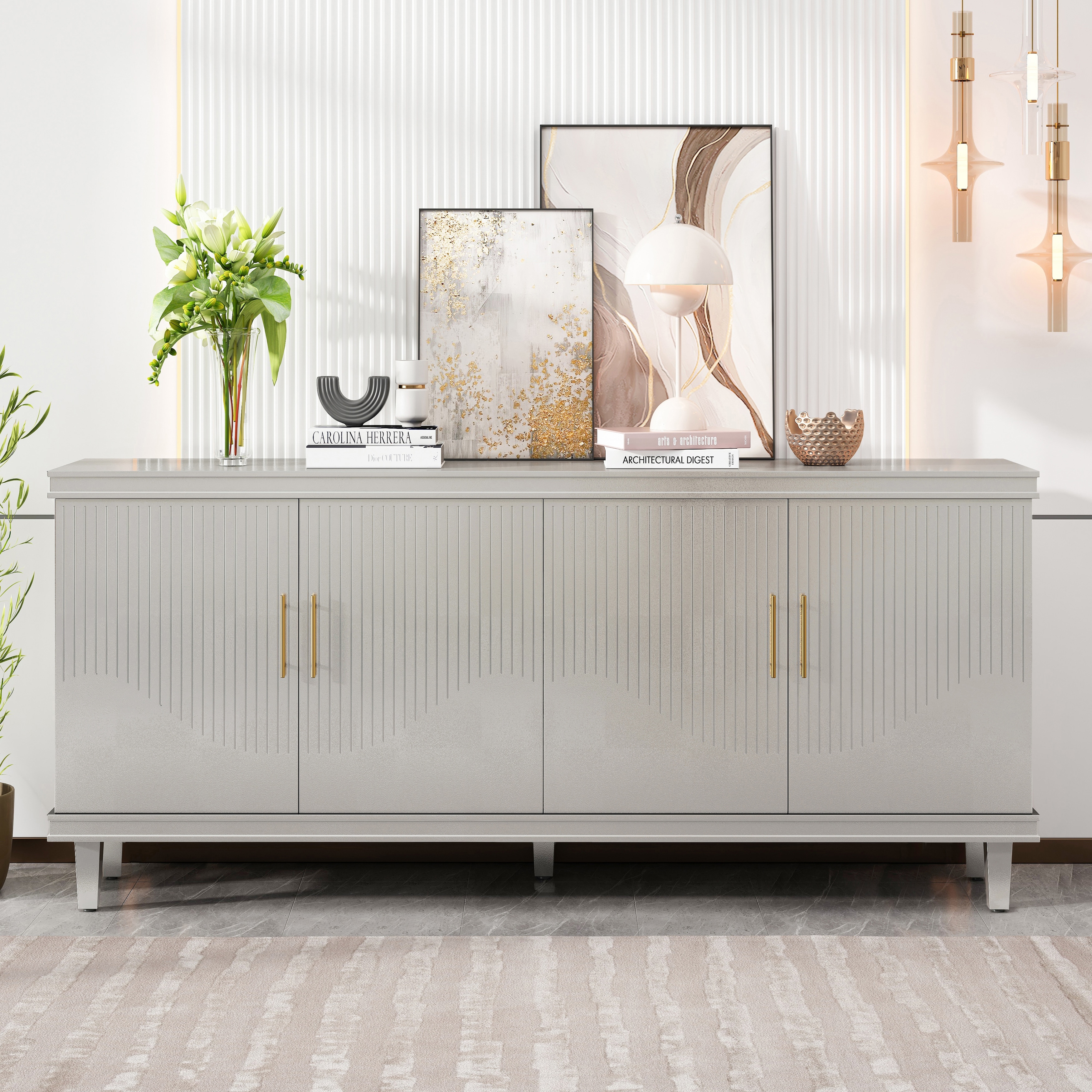 70.07" Large Size 4 Door Cabinet, Suitable for Living Room, Kitchen, Bedroom, Corridor (Champagne)