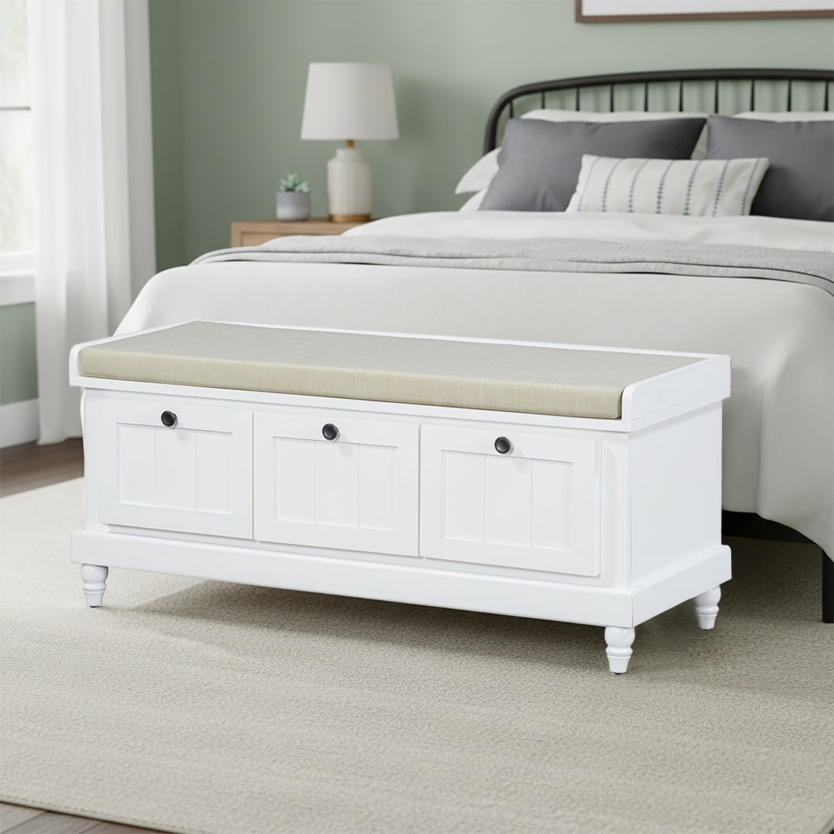 Modern Elegant Wooden Storage Bench with Removable Seat Cushion