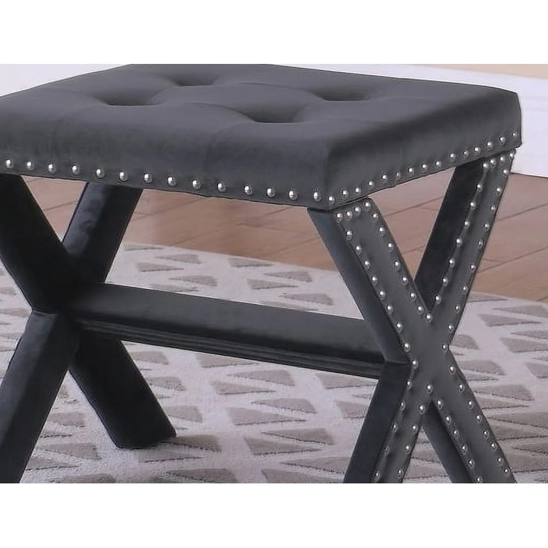 1pc Dark Oak Finish Bench Dining Room Wooden Frame Gray Upholstery Seat Furniture