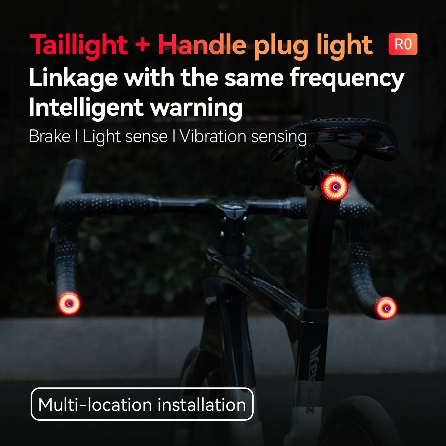 Bicycle Handlebar End And Rear Safety Light With Intelligent Brake Sensor And Waterproof Design handlebar End Light