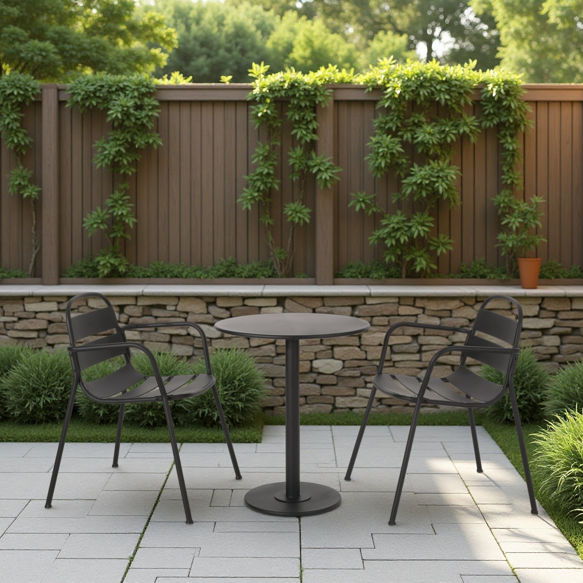 3-Pieces Metal Bistro Set with Two Chairs and Round Table