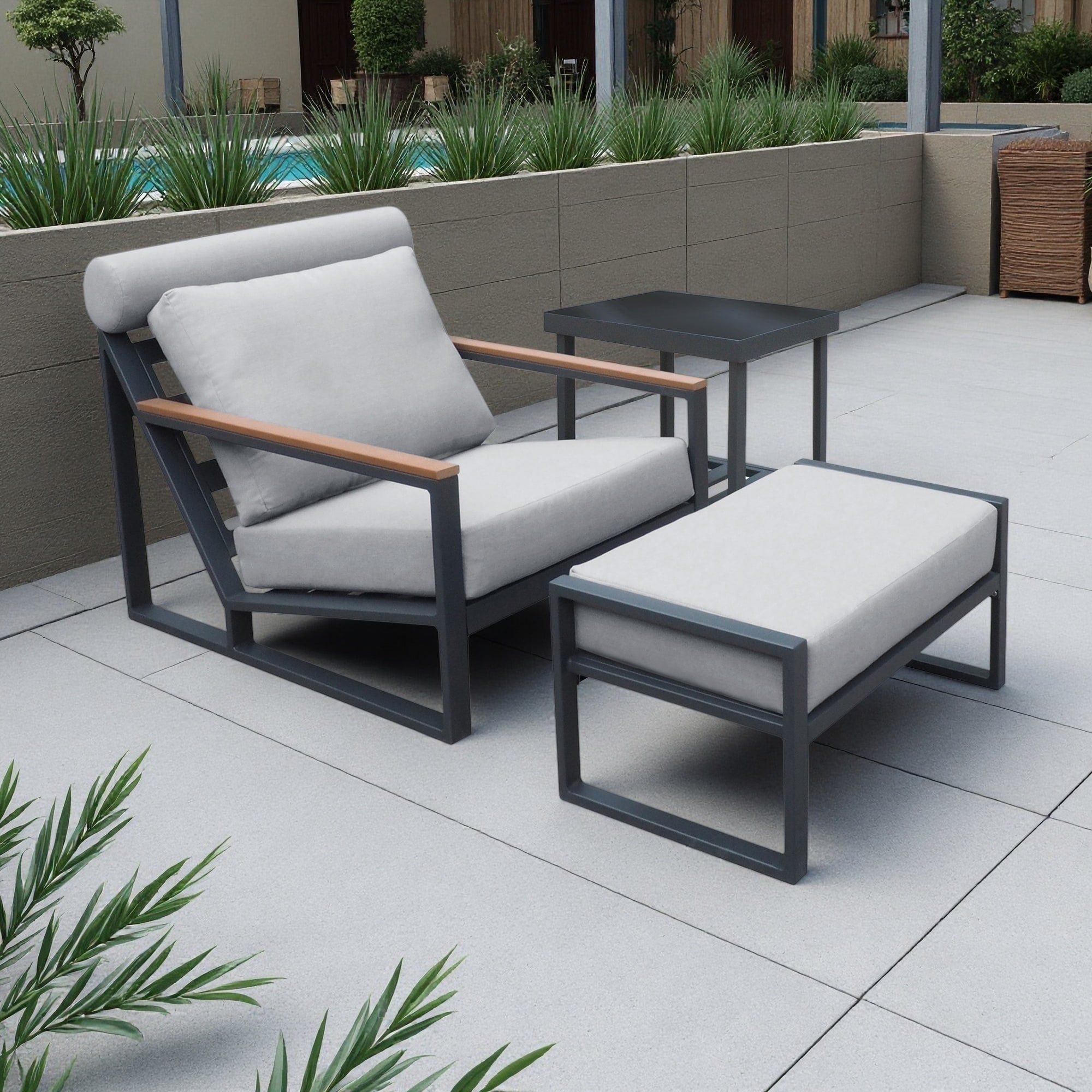 Roomfitters 3 Pcs Acacia Wood Patio Conversation Set with Metal Frame and Gray Cushions, Outdoor Seating and Table, Natural+Grey