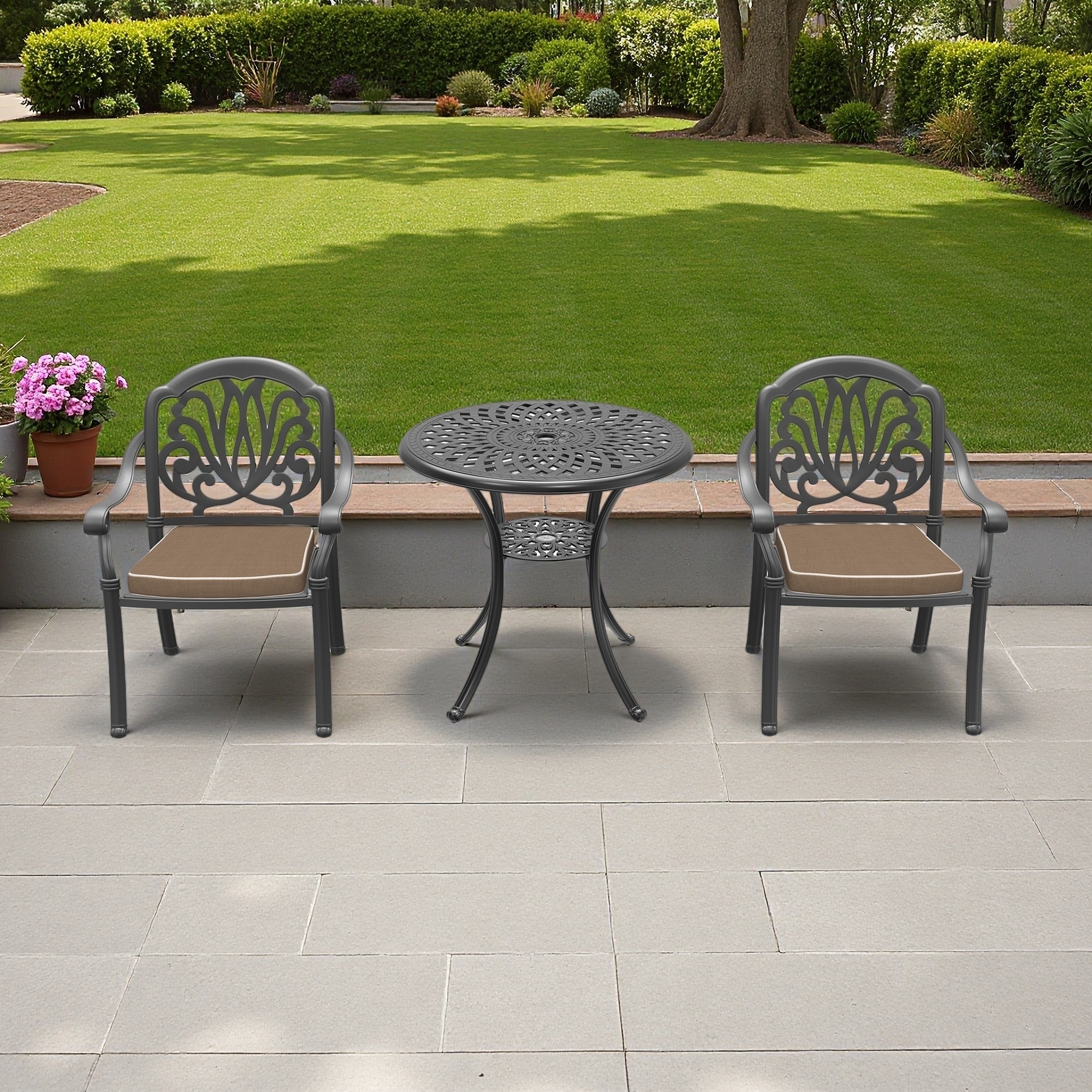 3-Pieces Aluminum Dining Set with 2 Chairs and Round Table