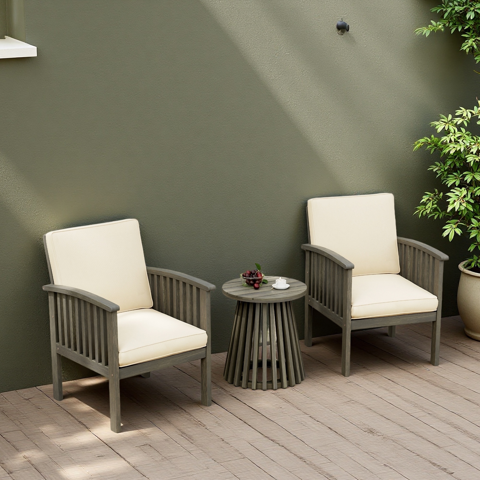 3-Pieces Acacia Wood Patio Set with 2 Club Chairs and Side Table for Garden, Patio