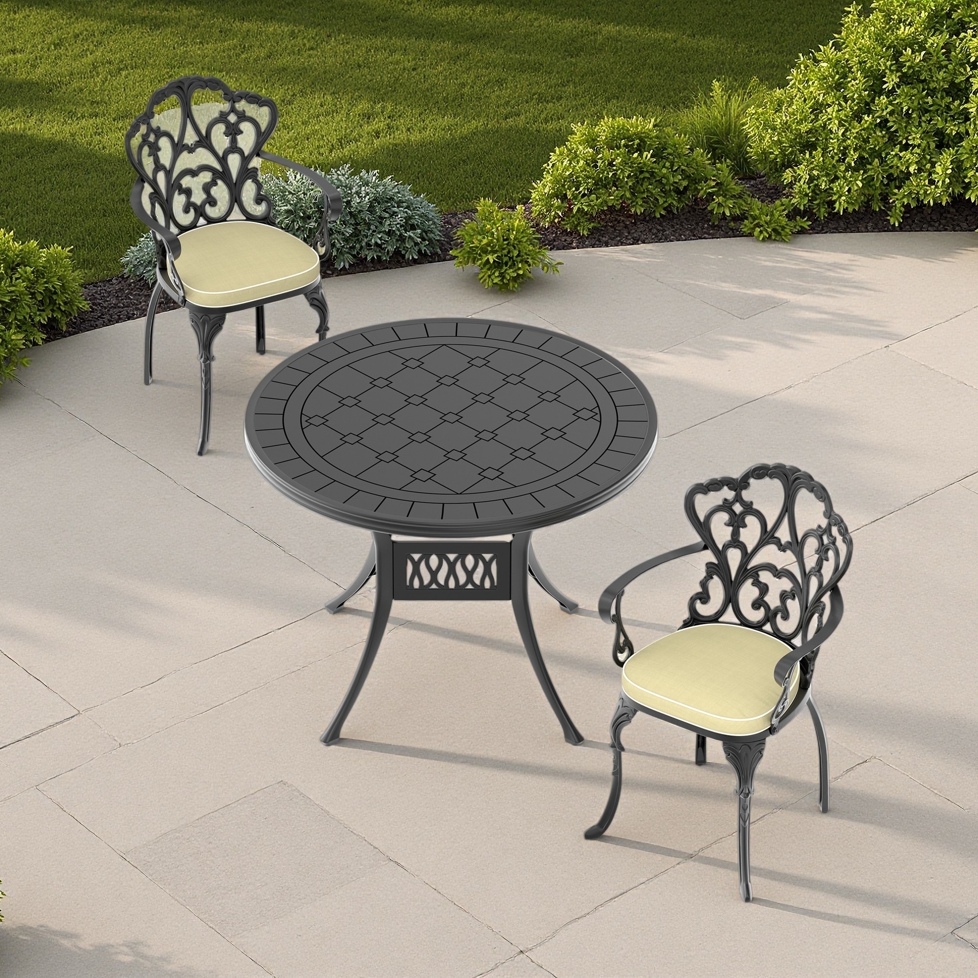 3-Pieces Aluminum Dining Set with 2 Chairs and Round Table