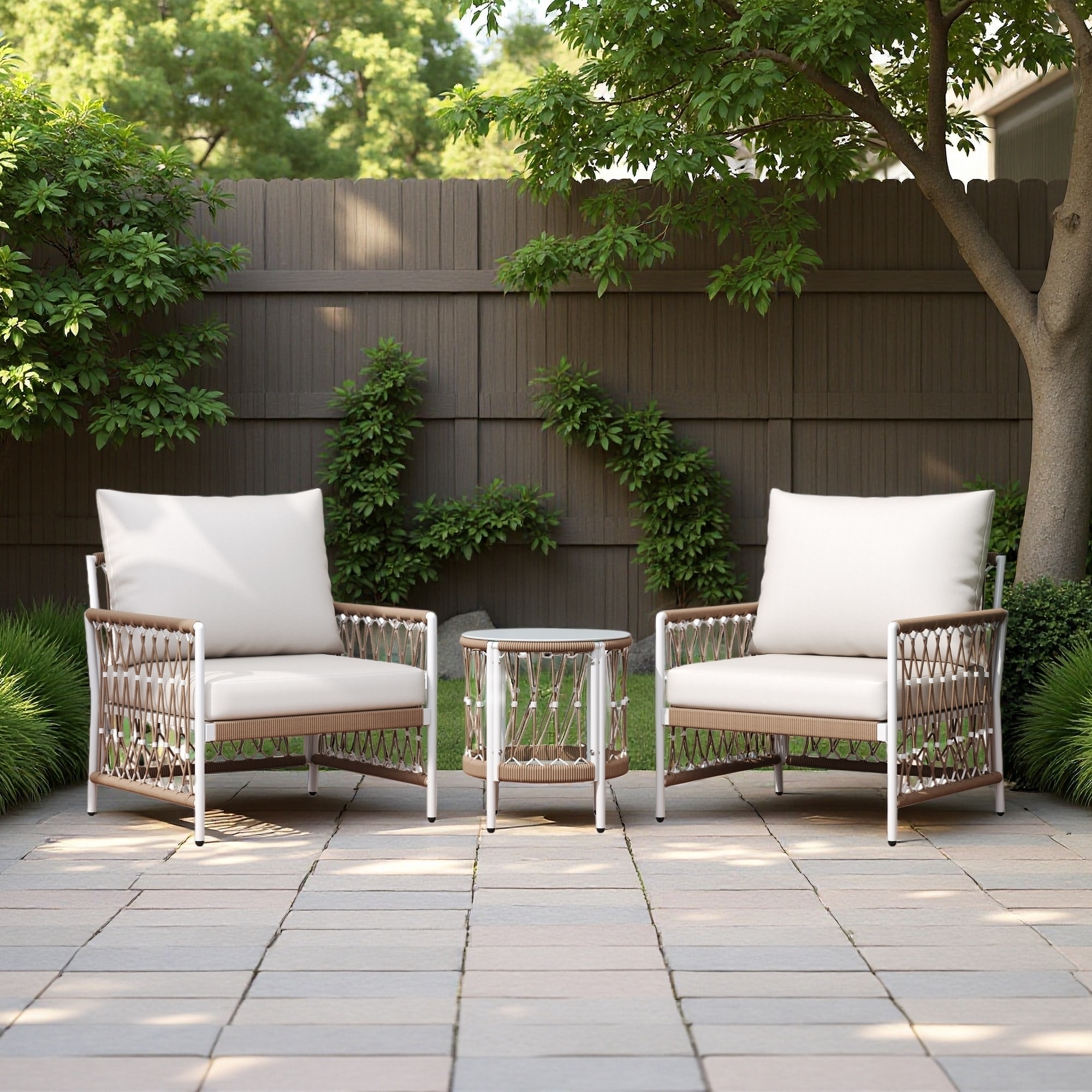 3-PC Beige Wicker Patio Conversation set with Glass Table