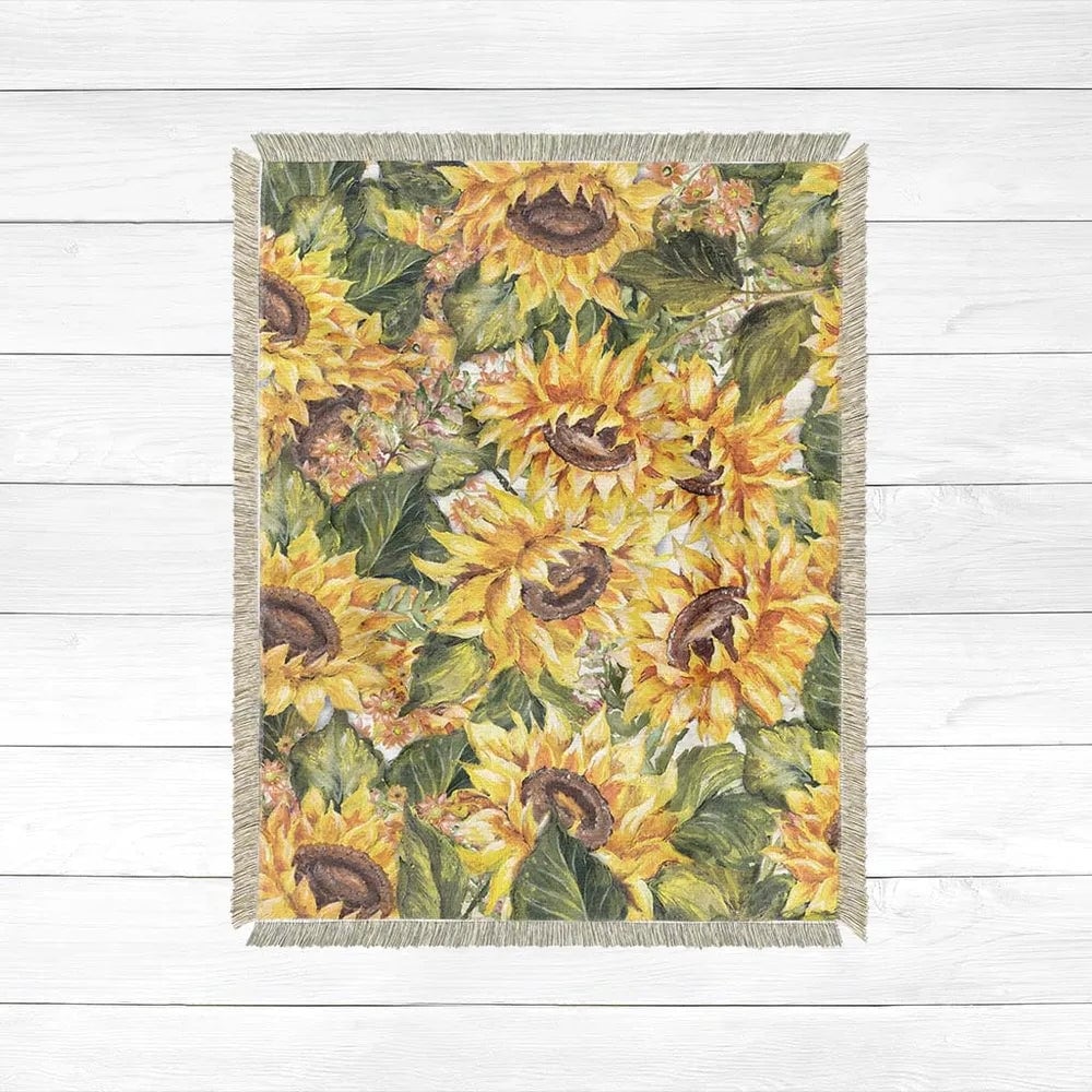 Laural Home Sunflower on Shiplap Woven Throw Blanket