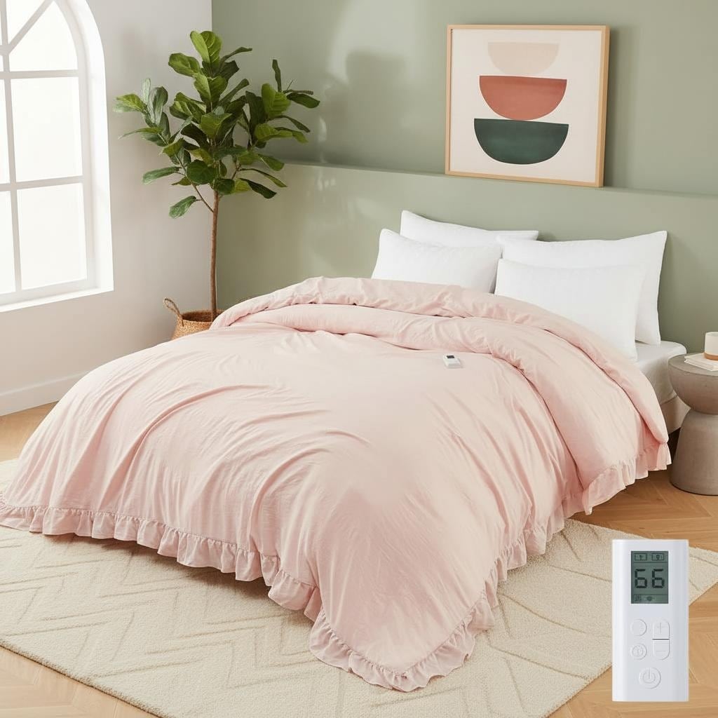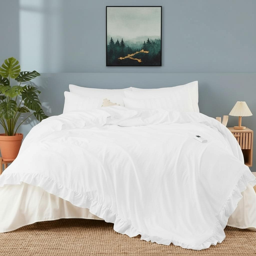 Garvee Heated Comforter Blanket Fast Heating Soft Ruffle Washable Electric Quilt