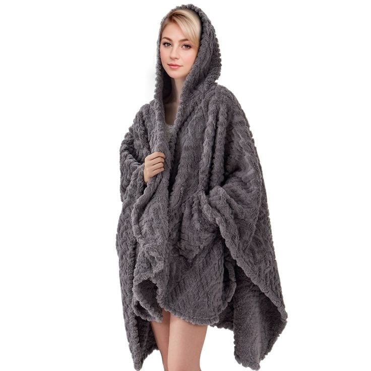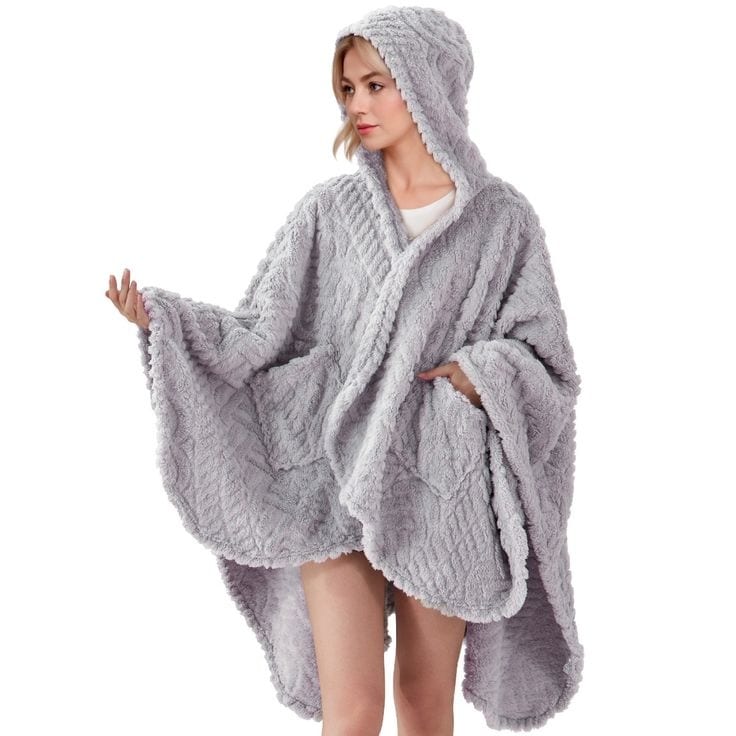 Walensee Wearable Sherpa Blanket Hoodie for Adults - Ultra-Soft, Cozy, Hooded Fleece Wrap with Pockets (59" x 63").