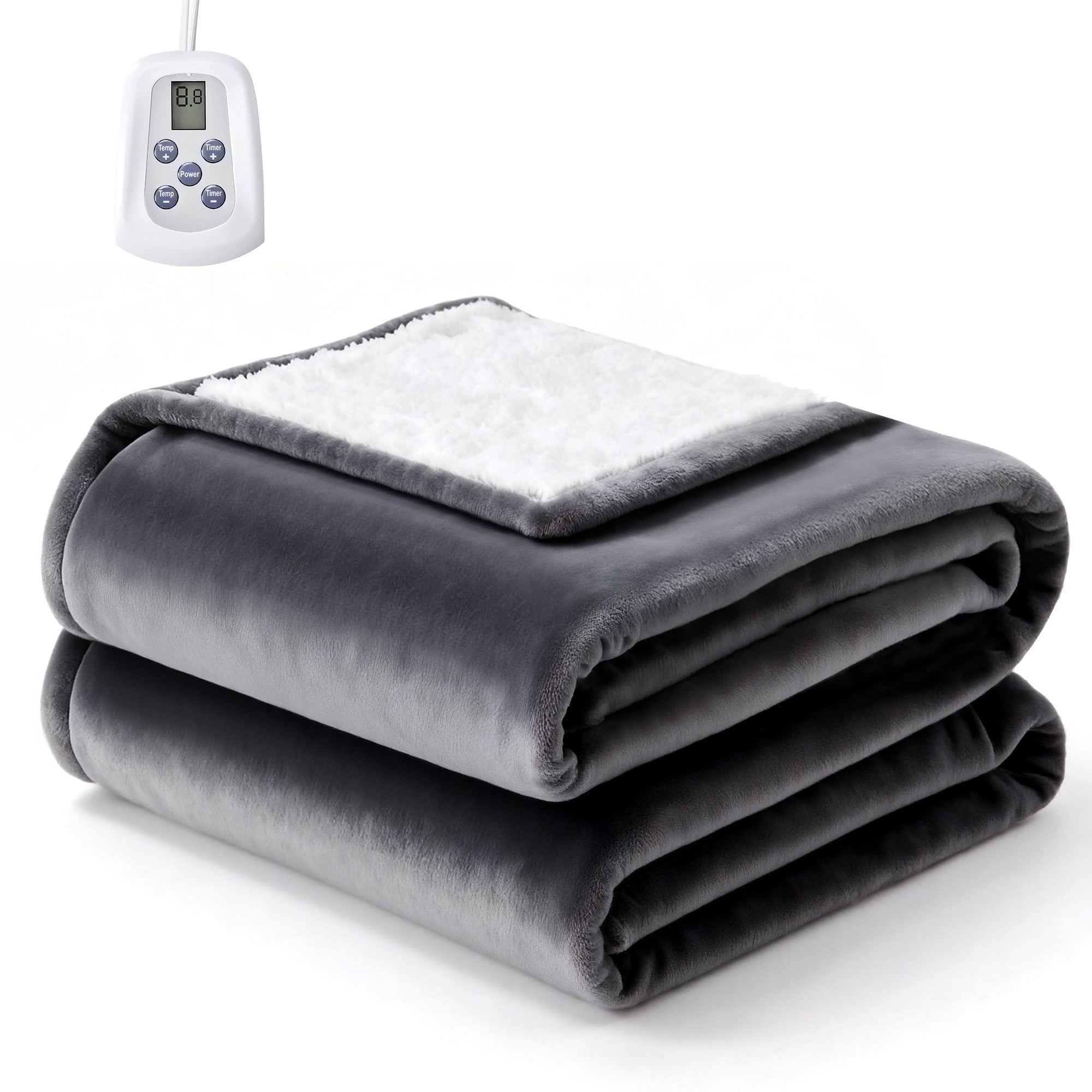 Electric Heated Blanket with Dual-Sided Flannel & Sherpa, Fast Heating & Even Warmth, Machine Washable Heated Throw for Bed
