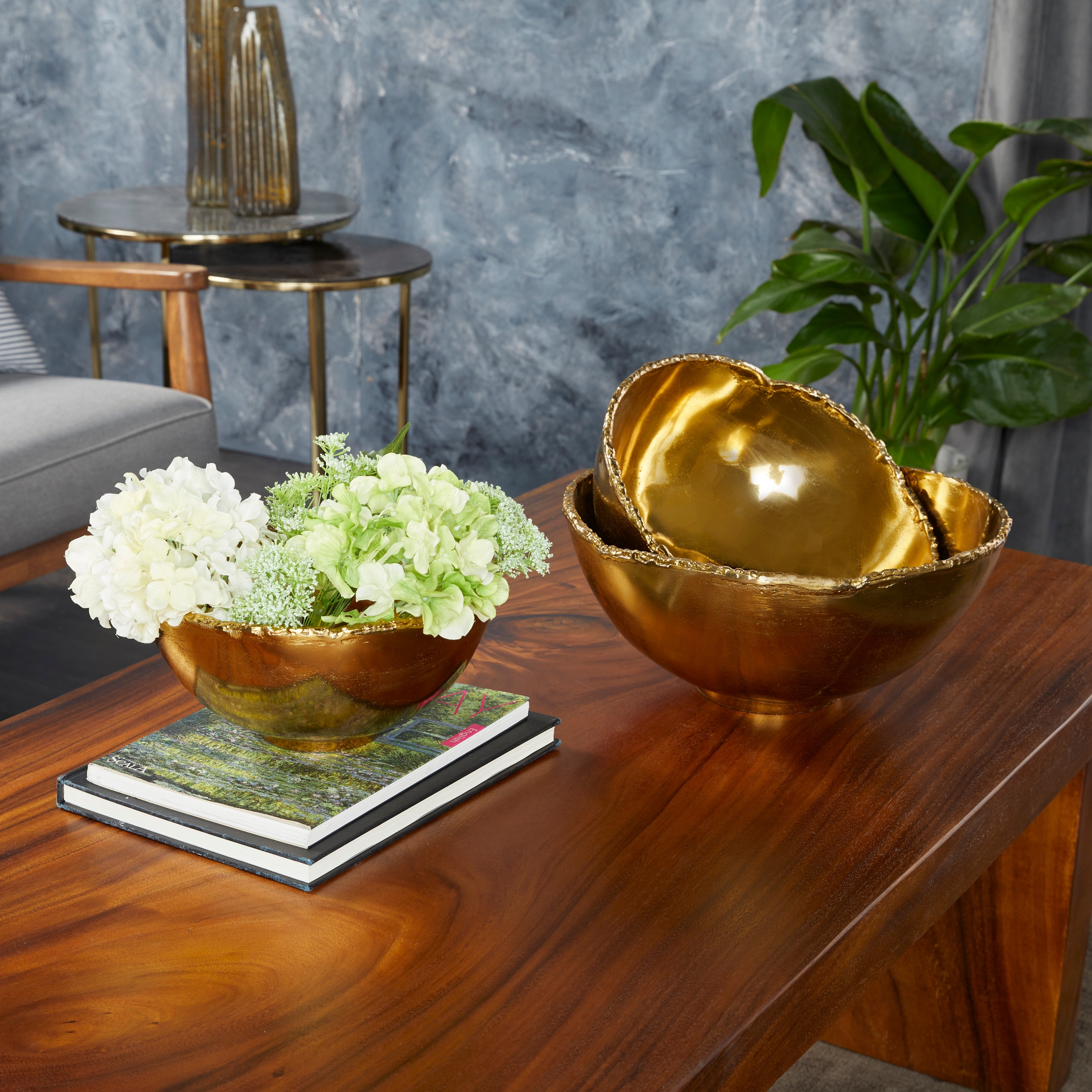 Gold Aluminum Metal Decorative Bowl Decorative Bowl (Set of 3) - 14 x 14 x 6 Round