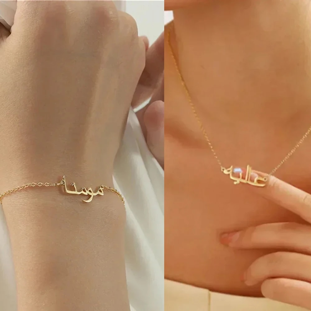Personalized Gold Stainless Steel Arabic Name Bracelet For Men And Women Custom Arab Charms Jewelry, Perfect Gift necklace Rose Gold 19cm