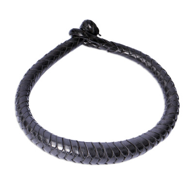 Black Grace,'Handcrafted Braided Leather Bracelet in Black'