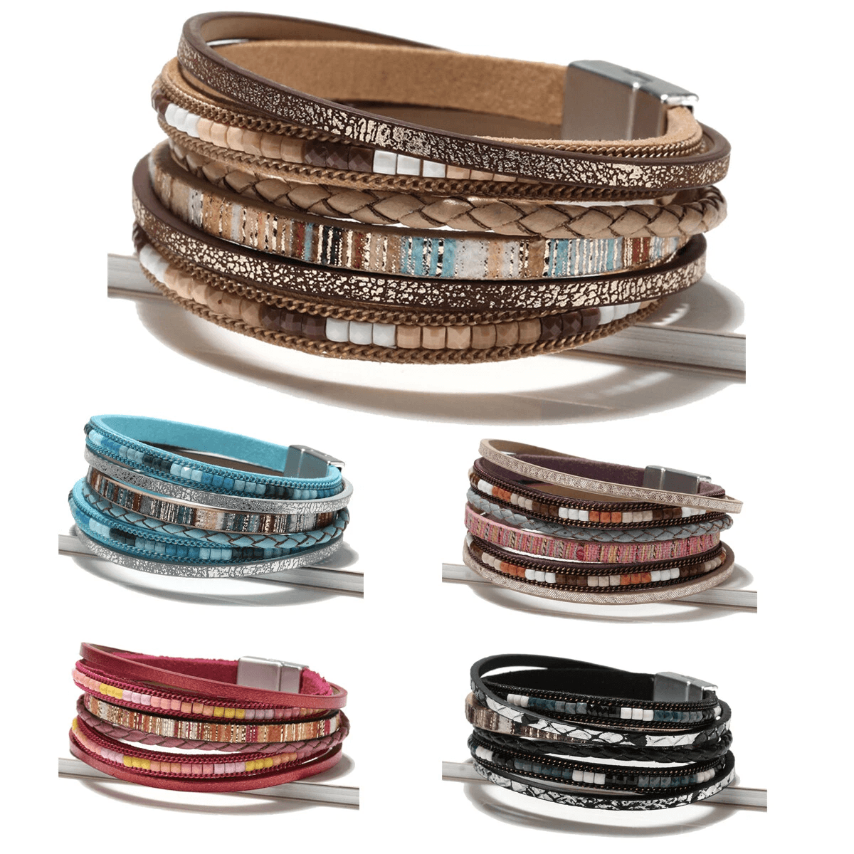 Boho Multilayer Leather Bracelet Set For Men And Women, Adjustable Wristband Bangle Jewelry Gift brown