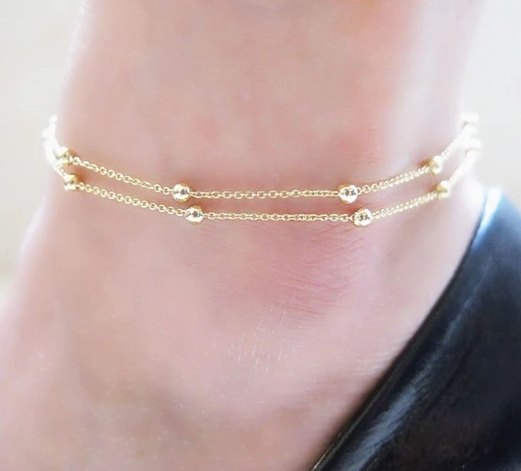 Elegant Gold Silver Anklet, Double Layer Beads Foot Chain, Trendy Ankle Bracelet For Women silver