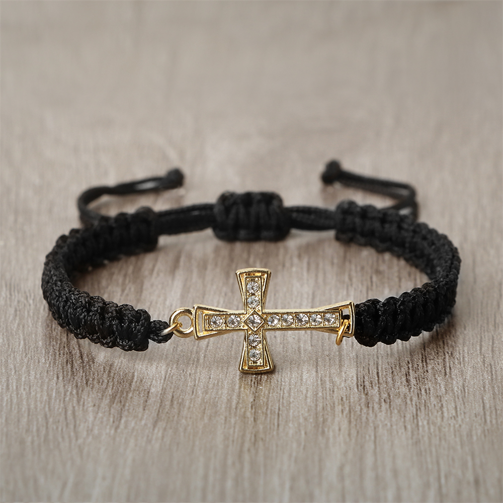 Men Crystal Cross Pendant Bracelet, Adjustable Red Black Braided Friendship Jewelry For Women black 1