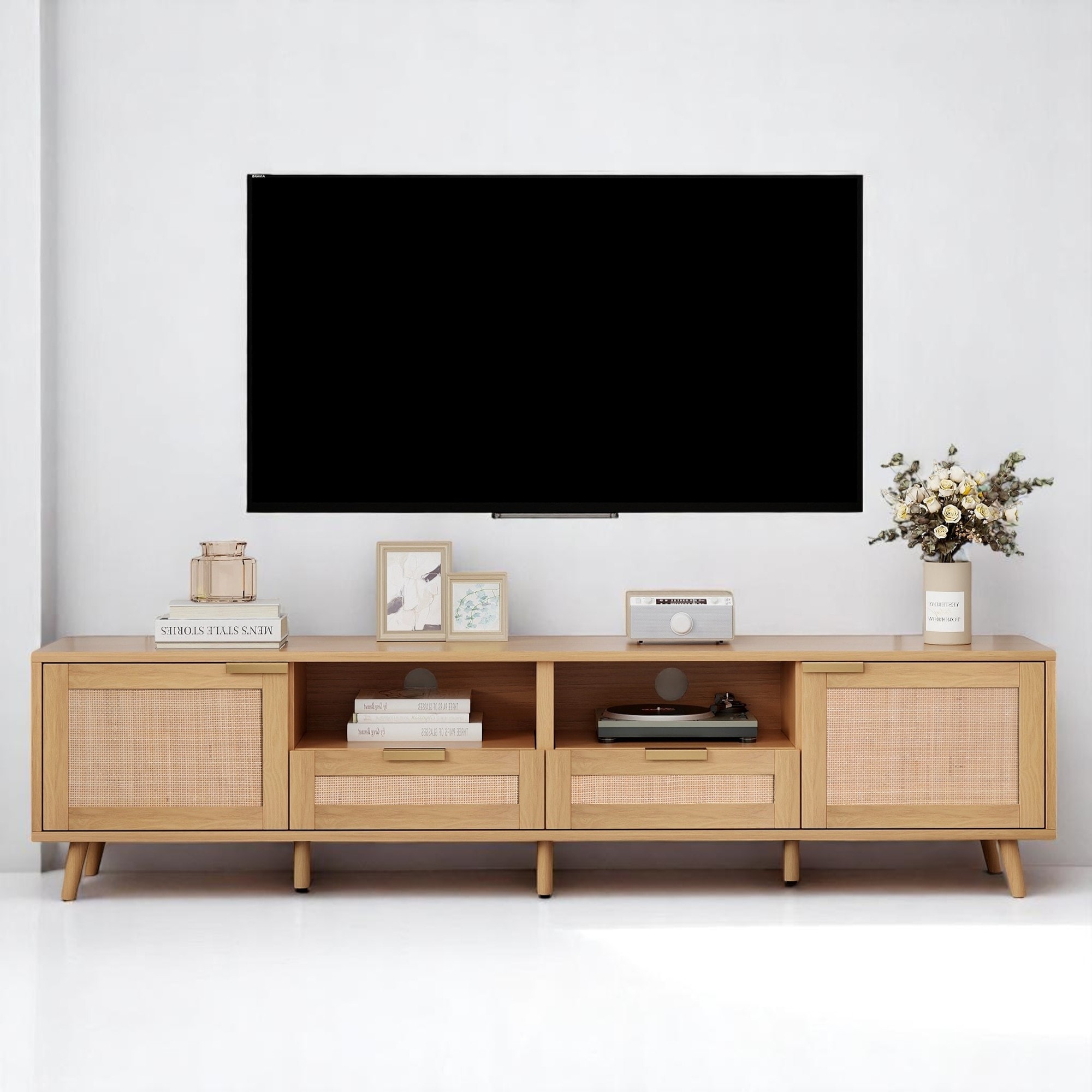Rattan TV Stand for TVs up to 85",Modern Farmhouse Media Console with Storage Cabinets,Solid Wood Legs,Entertainment Center 78"