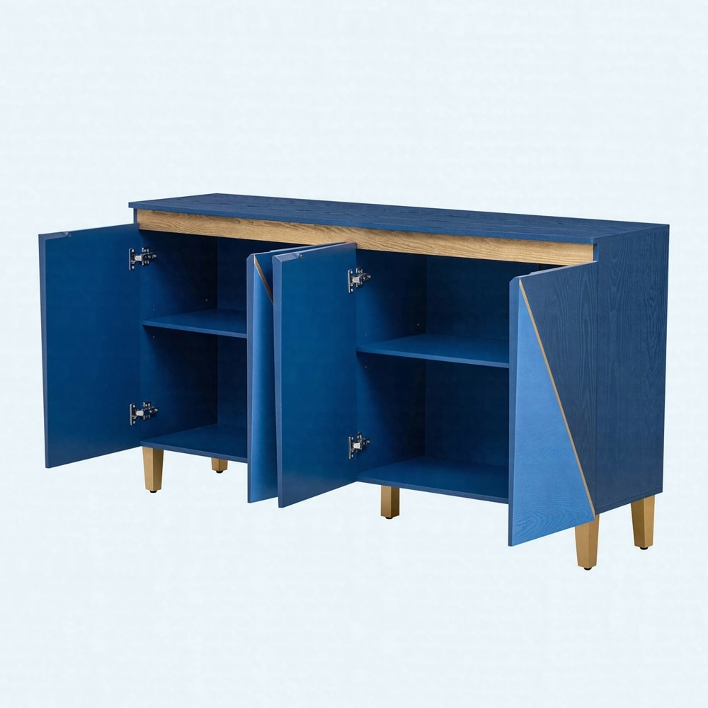 Refined Industrial 4-Door Credenza with Wooden Arc Legs and Bronze Clasps