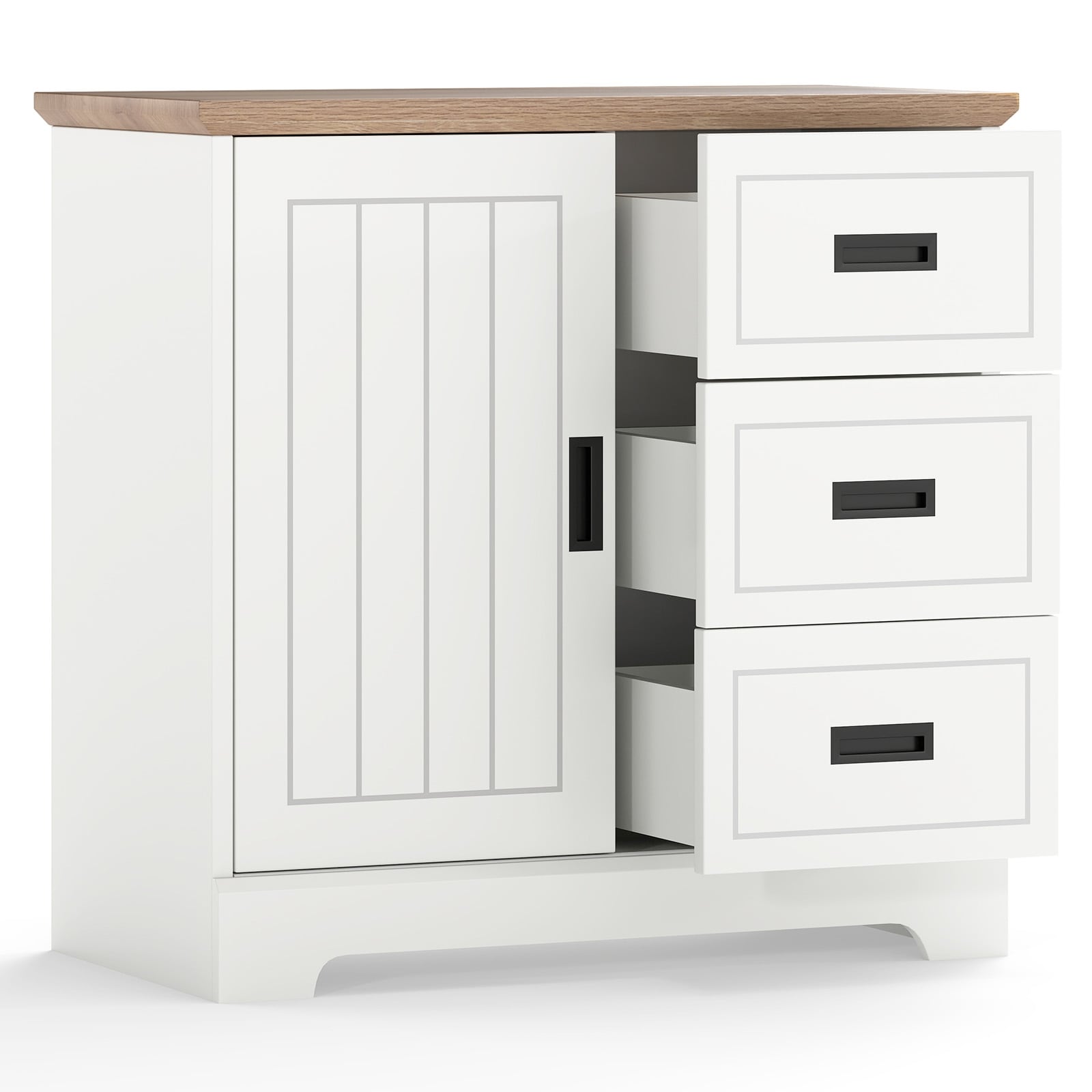 White Engineered Wood Farmhouse Sideboard with Sliding Doors and Drawers - 31.5" x 15.5" x 30.5"