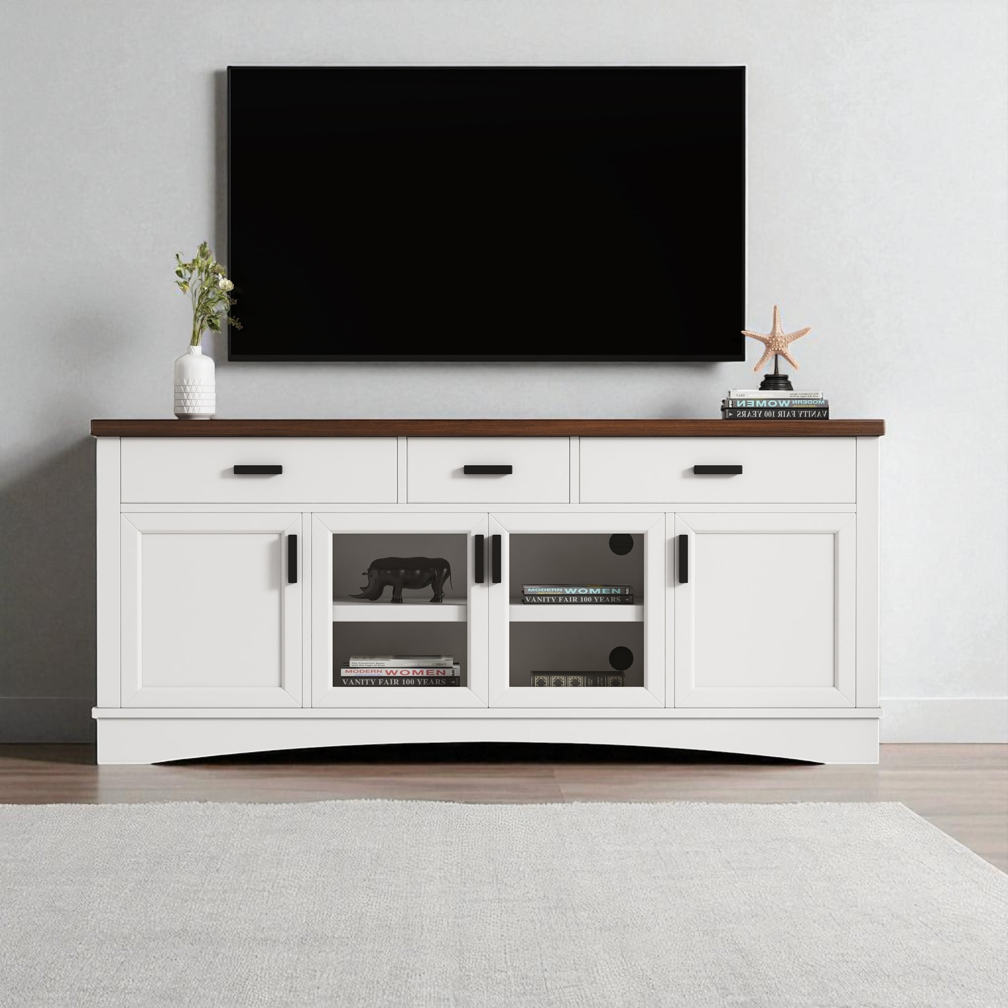Modern 67" TV Stand with Glass Doors, Storage Drawers and Adjustable Shelves, Media Console with Cable Management