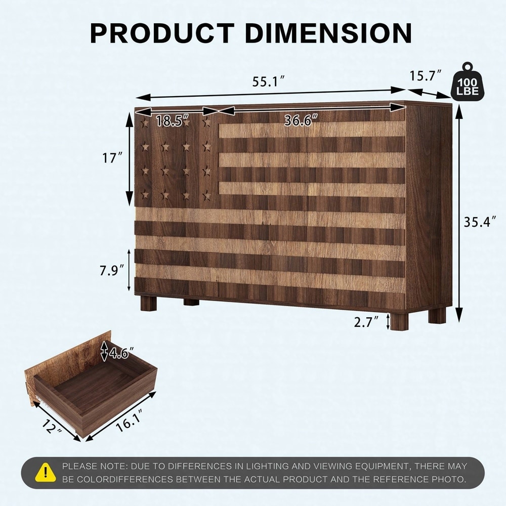 55" Walnut Buffet Sideboard Cabinet - Storage Console with Drawers & Adjustable Shelves