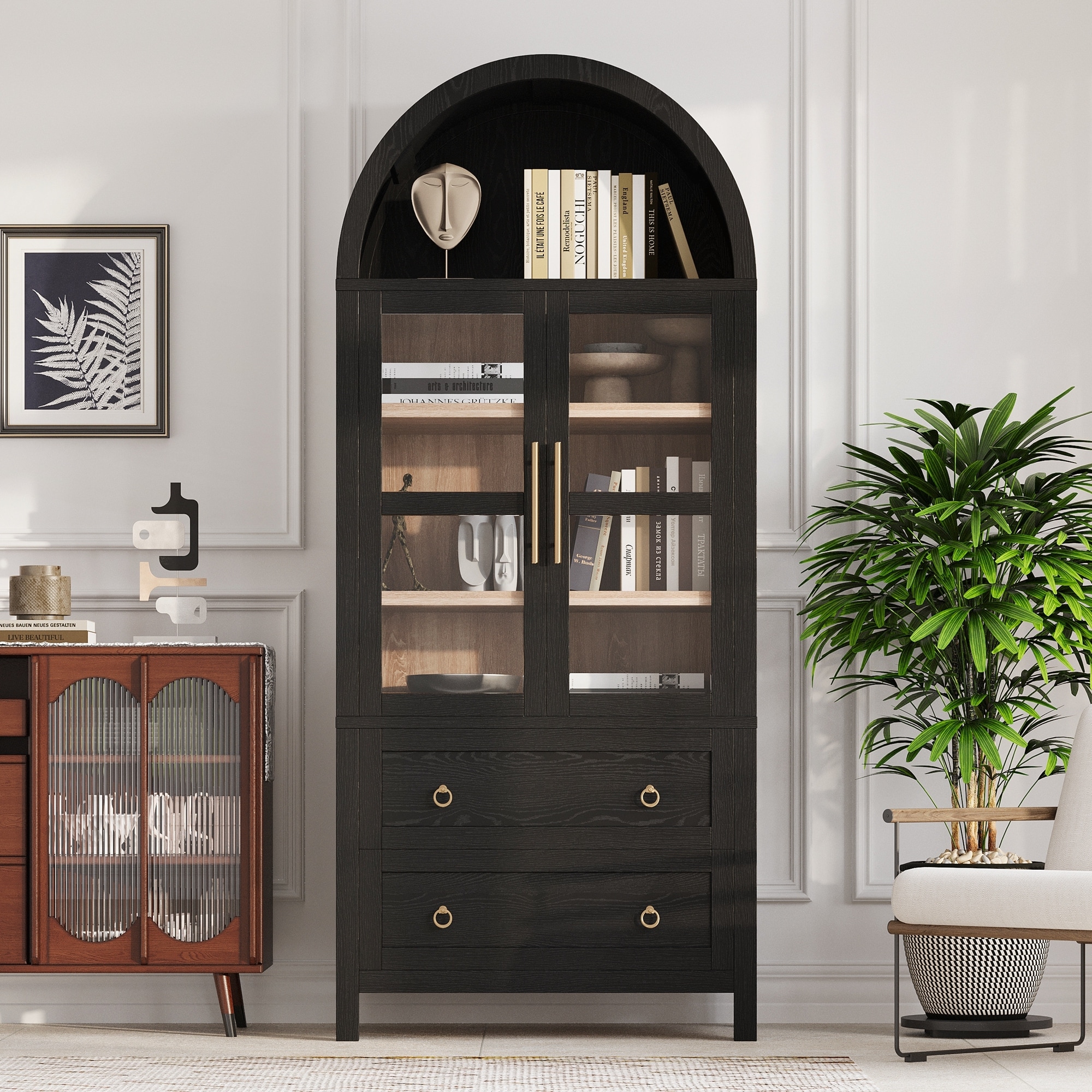 71inch Tall Arched Kitchen Pantry Cabinet with 2 Large Drawers