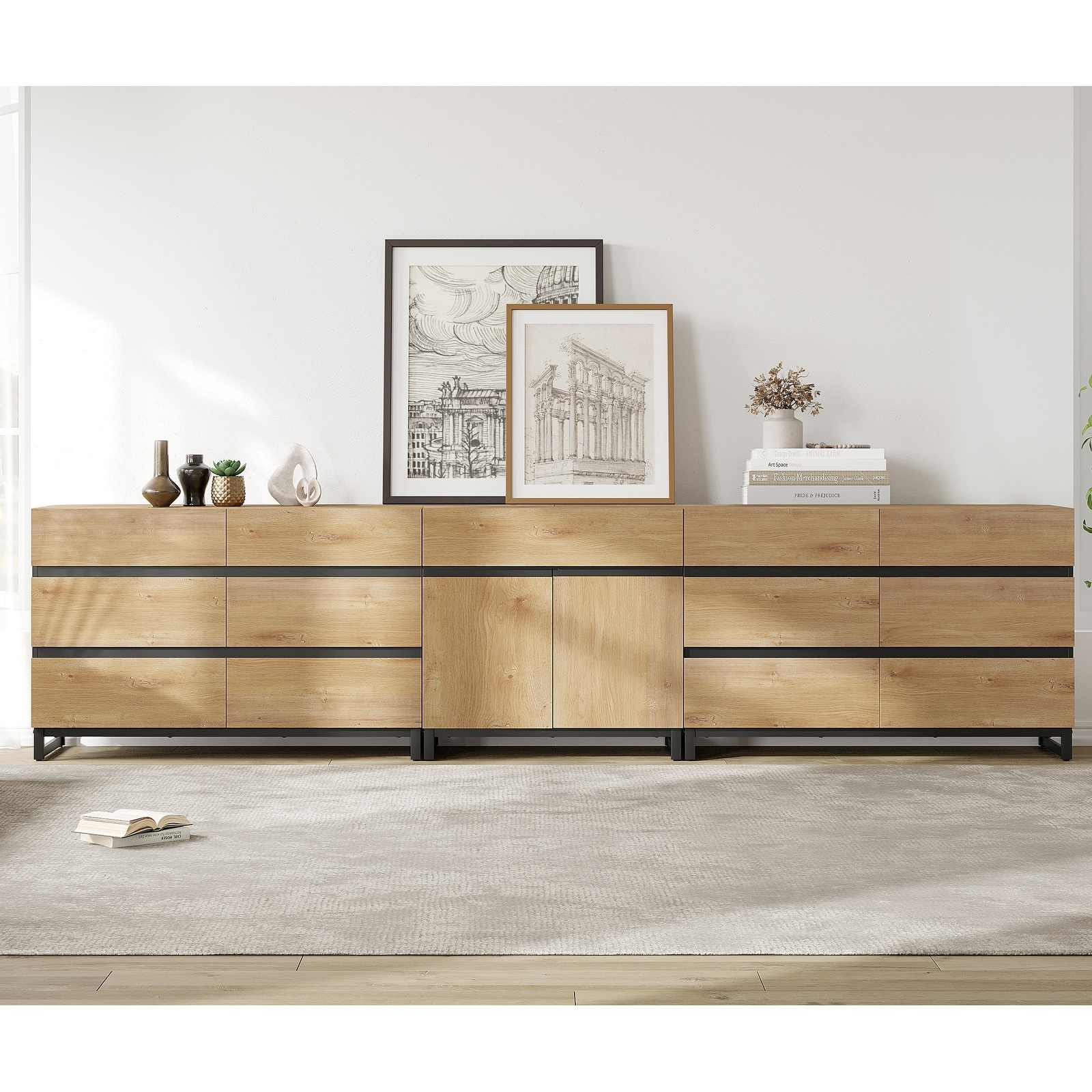 WAMPAT Modern Sideboard with Adjustable Shelves, 3 in 1 Storage Cabinet with Glass Doors, Coffee Bar Cabinet for Kitchen