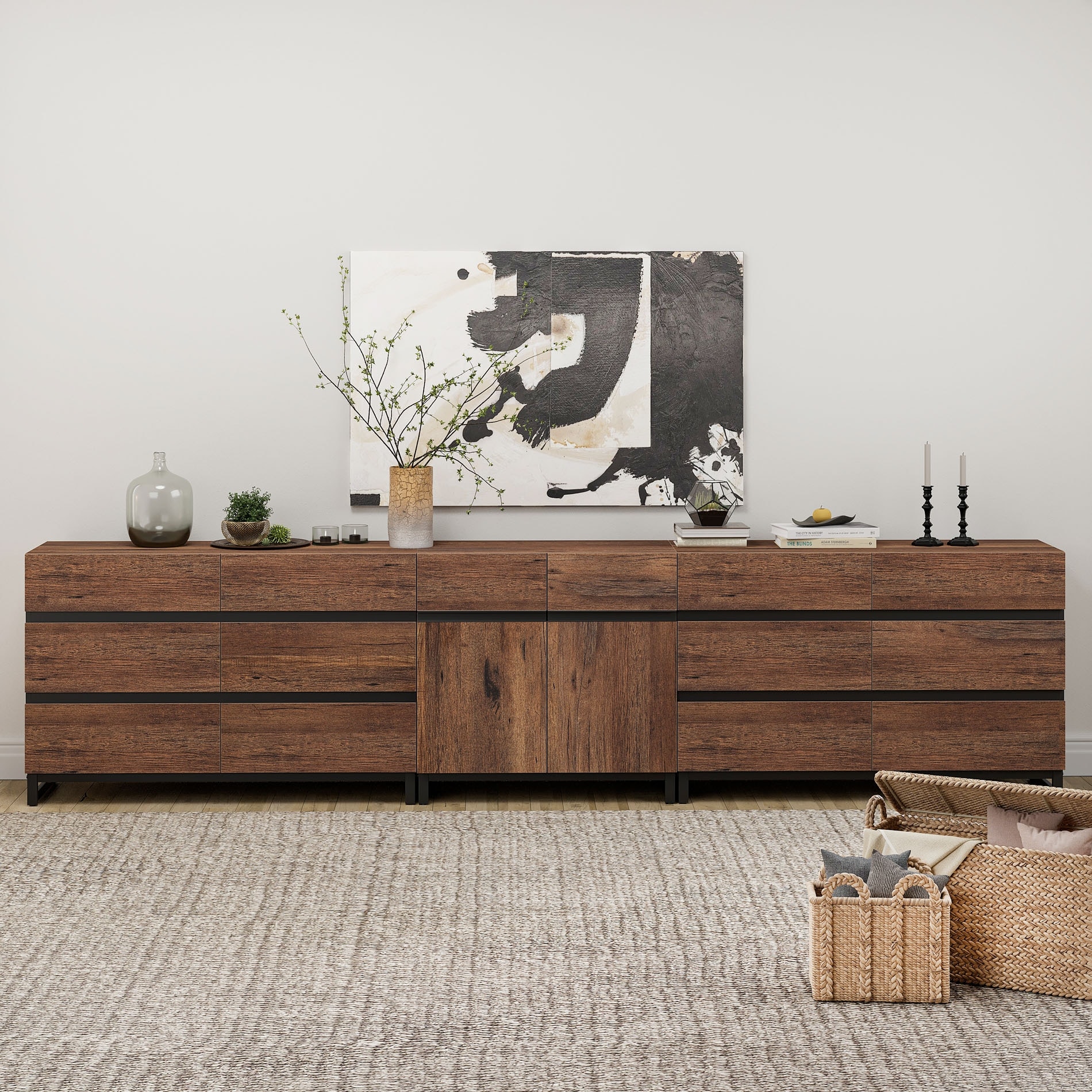 55" Walnut Buffet Sideboard Cabinet - Storage Console with Drawers & Adjustable Shelves