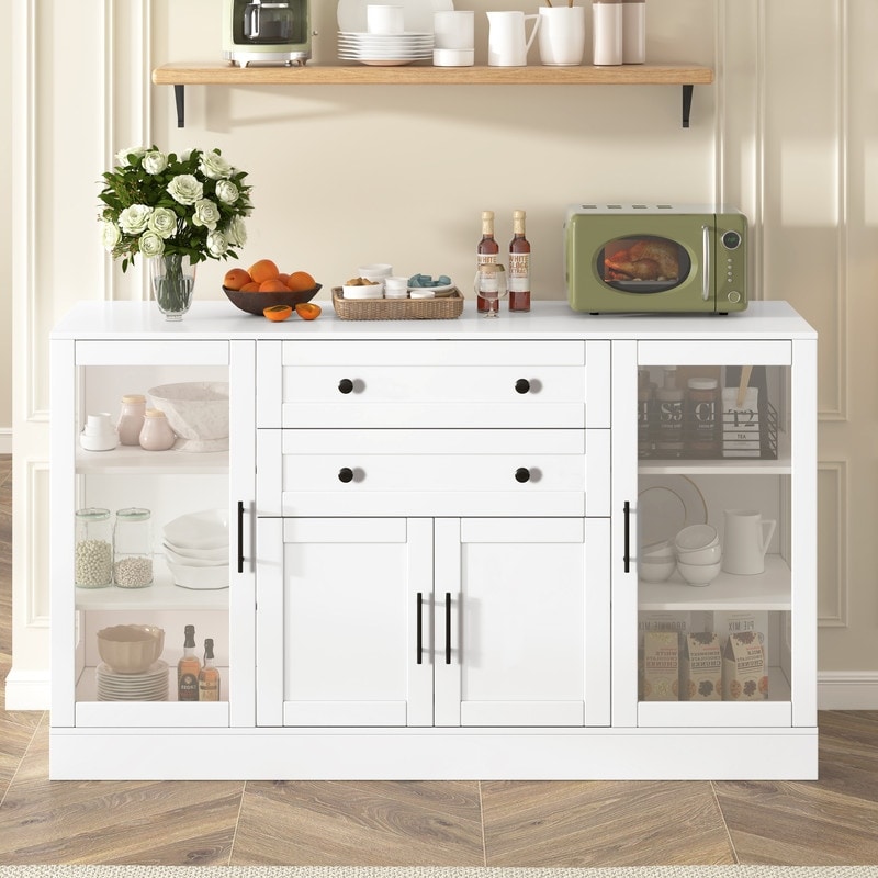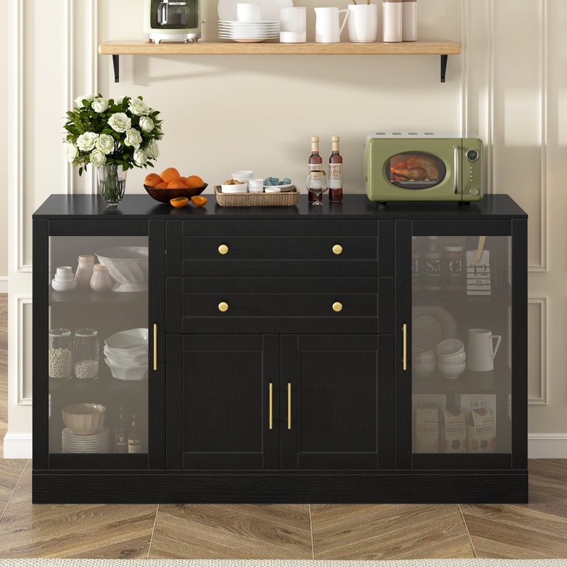 Sideboard Buffet Storage Cabinet with Glass Doors,Large Capacity with Wine Rack,for Food & Tableware