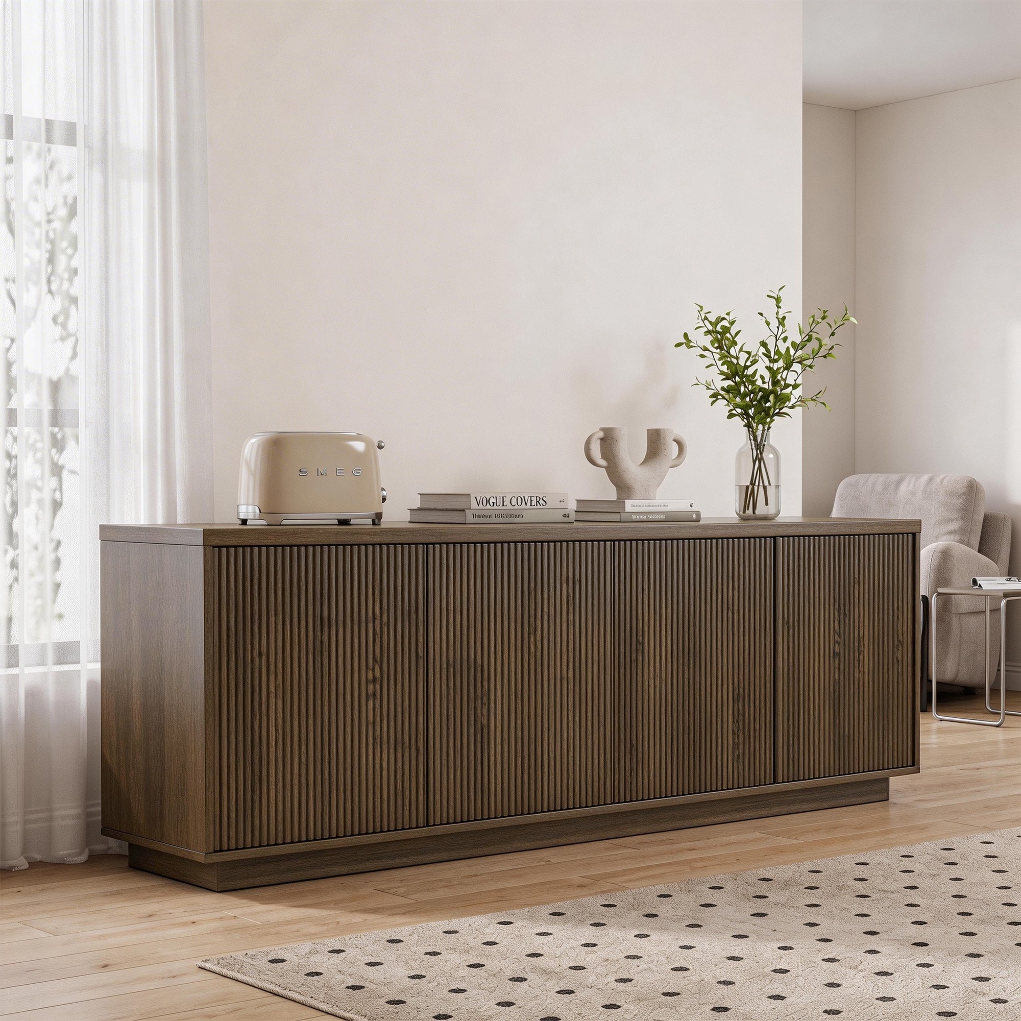 94.5" Modern Reeded 4-Door Sideboard With Charging, 4-In-1 Wooden Credenza Storage Cabinet
