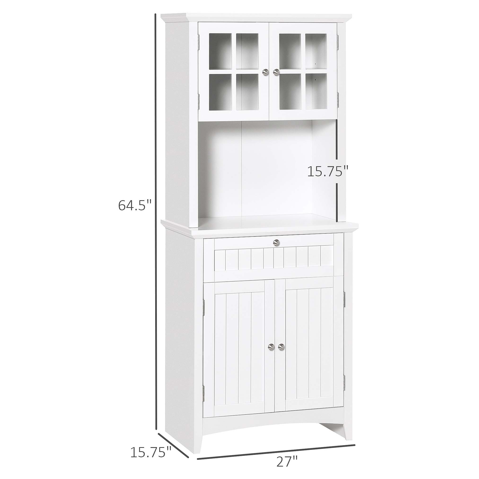 Tall Kitchen Pantry Storage Cabinet with Microwave Stand, Freestanding Buffet, Adjustable Shelves, and Glass Doors