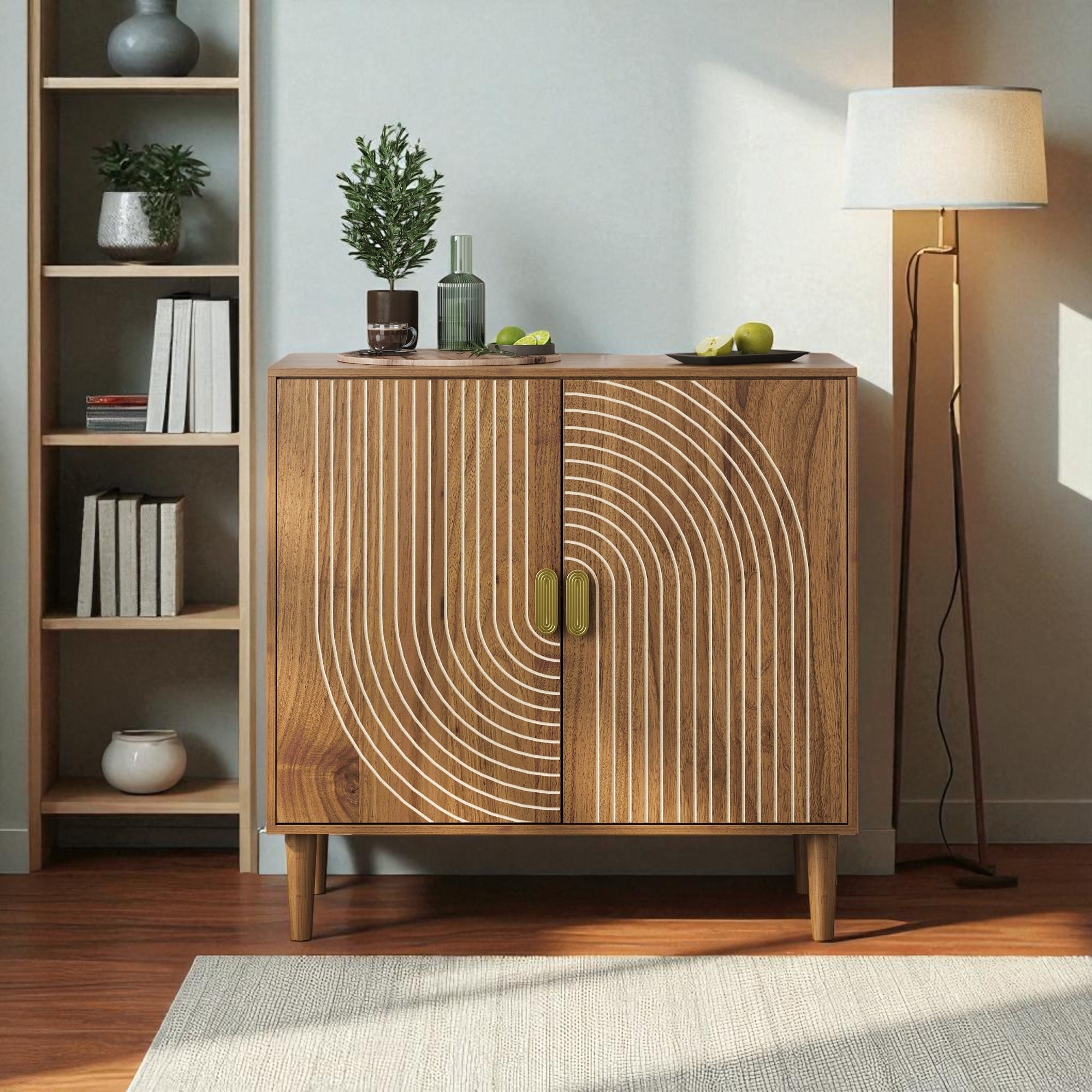 31.5" Walnut Wood Buffet Cabinet with Line Groove Design, Modern Sideboard Storage Cabinet for Living Room, Entryway, Kitchen
