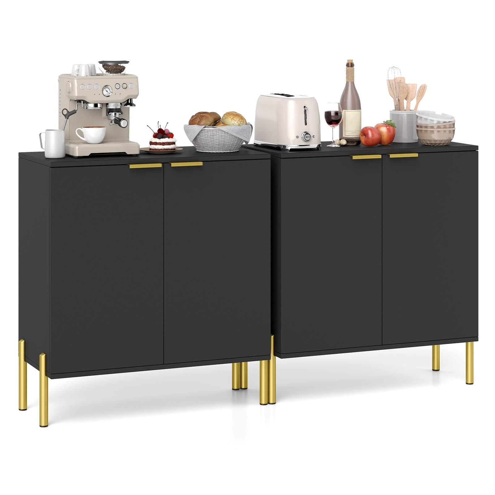 Gymax 2PCS 2-Door Buffet Cabinet Sideboard Cabinet w/ Shelf Metal Legs
