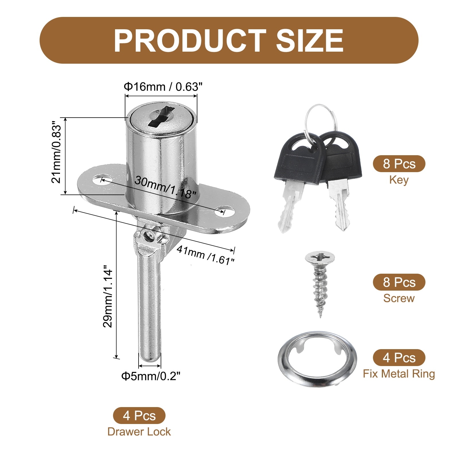 Drawer Lock with Keys File Cabinet Lock Keyed Different Steel Lock Cylinder Desk Locks for Office Wardrobe Locker