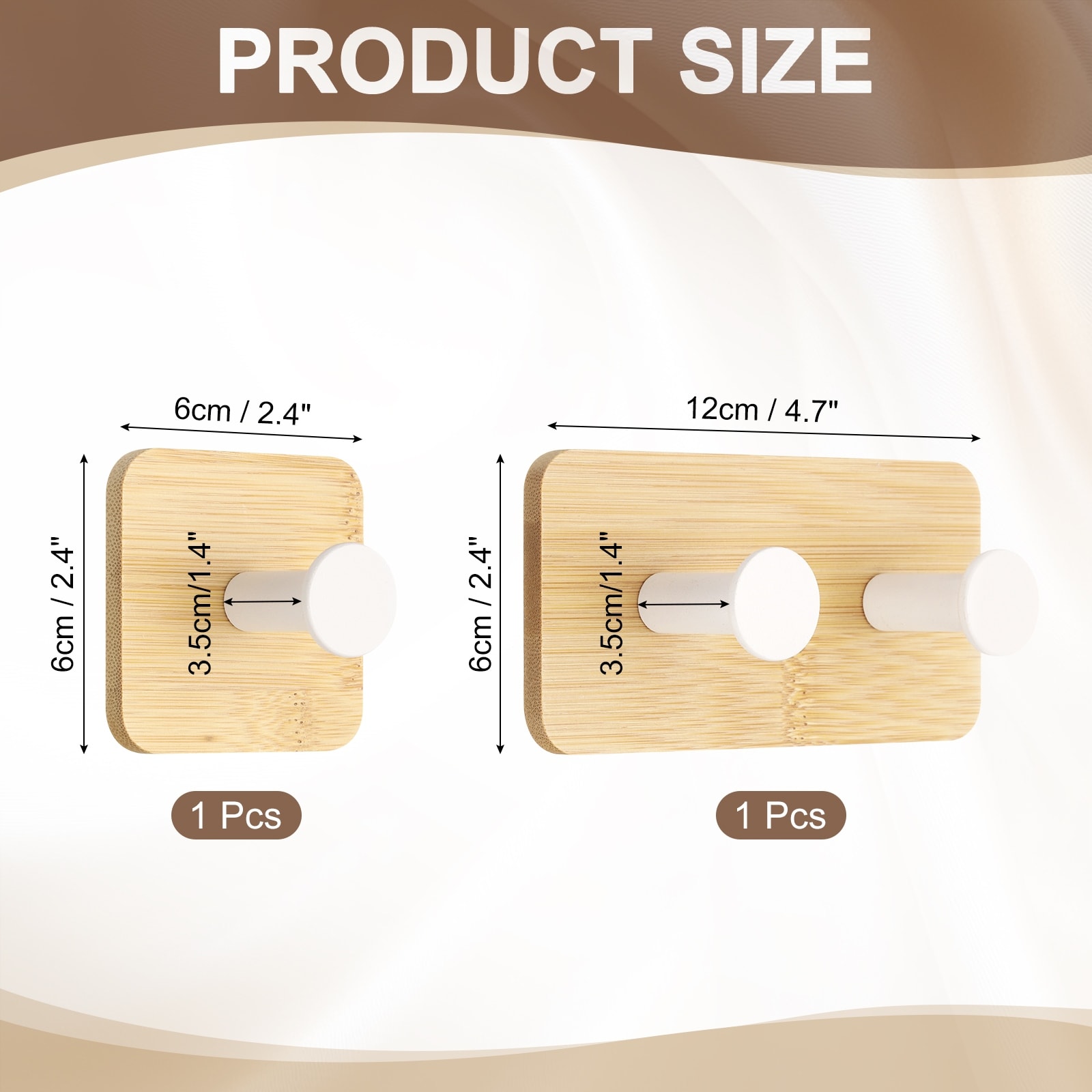 Wood Wall Self Adhesive Hooks Towel Hanger Bracket Heavy Duty Hook for Bedroom Kitchen Bathroom Coat - 2 Pcs