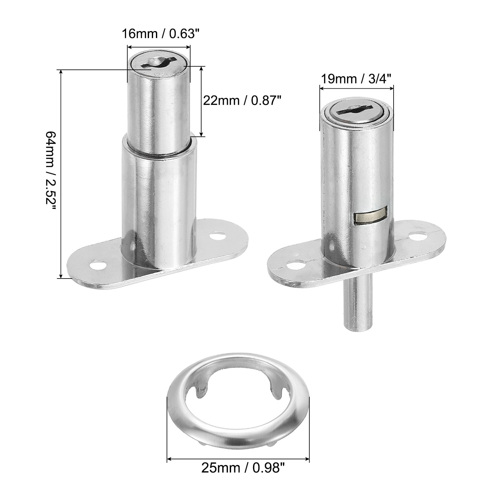 Push Plunger Locks Zinc Alloy Chrome Finish Desk Drawer Lock Keyed Alike for File Cabinet - Silver