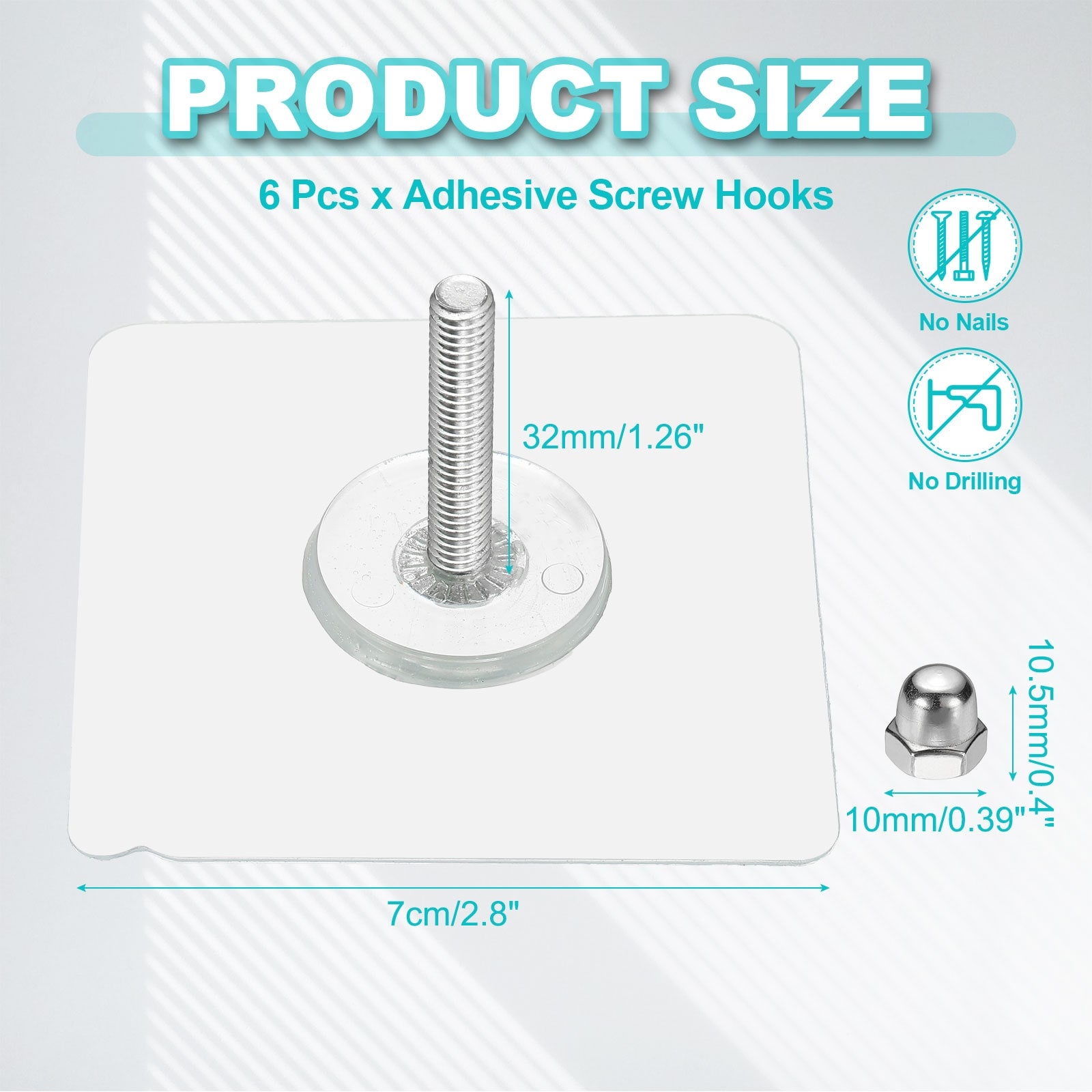Adhesive Wall Mount Screw Hooks, Square Drill Free Adhesive Hooks - Clear